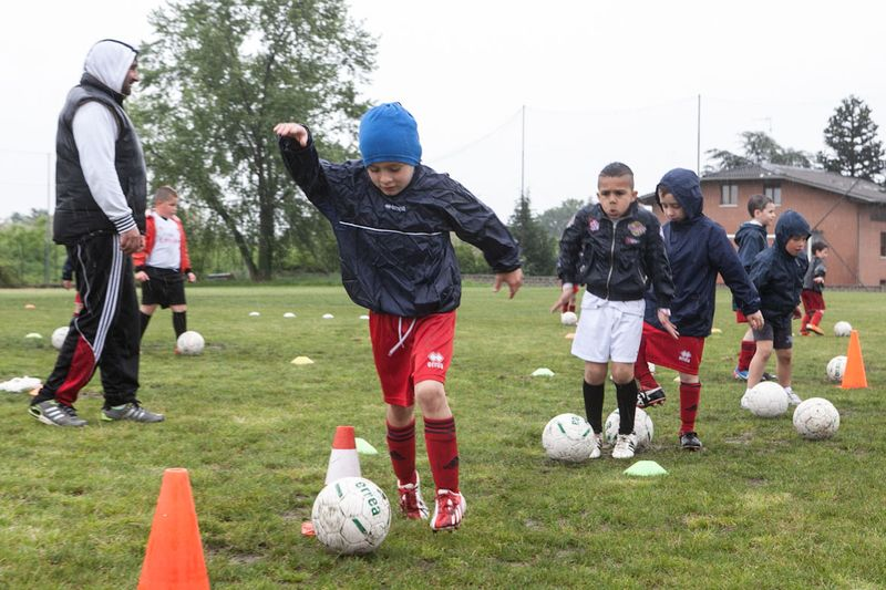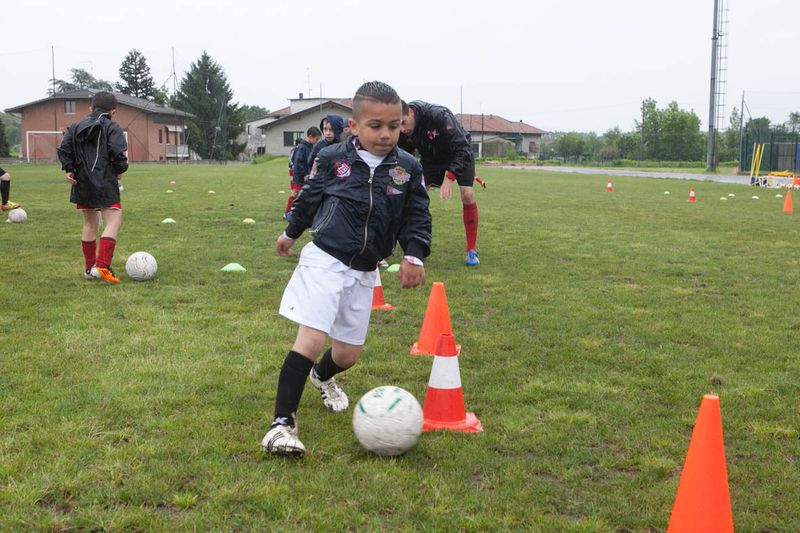Nonostante il maltempo questo pomeriggio erano tutti sul campo sportivo di Candelo i piccoli calciatori della squadra, si divertivano a correre sul prato aspettando che i tecnici del Milan Junior Camp finissero di preparare i percorsi per la dimostrazione durata tutto il pomeriggio.