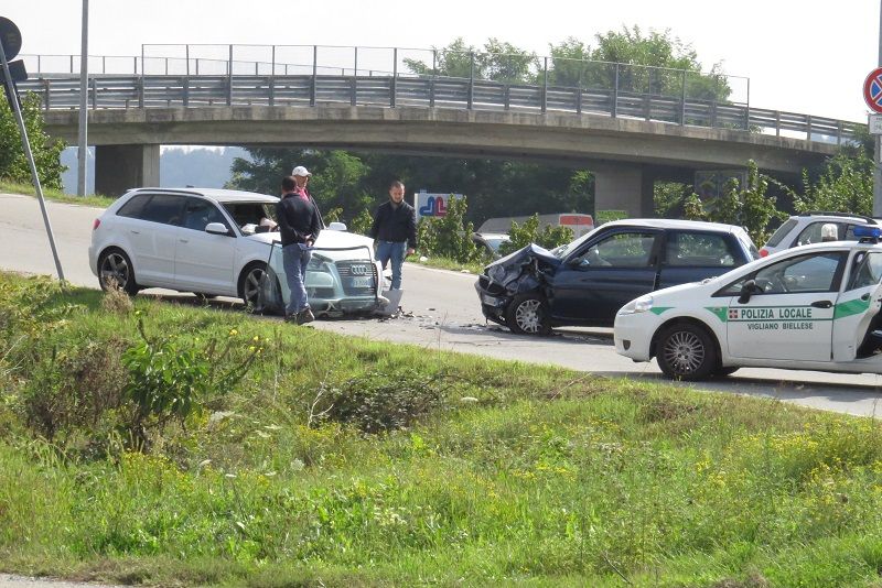 Stavano scendendo dalla rampa del cavalcavia che dalla Bennet di Vigliano conduce alla zona industriale per raggiungere la Tnt Traco di via Delle Industrie. I due manager torinesi a bordo di un'Audi si sono visti arrivare incontro a velocità sostenuta una Y10 condotta da un ottantenne di Vigliano che li ha centrati in pieno. Fortunatamente solo danni alle auto, sia gli occupanti dell'Audi che il pensionato non hanno riportato traumi. Sul posto i vigili urbani di Vigliano e l'azienda pulizia strade per ripulire da olio e residui la zona dell'incidente. Qualche problema per la viabilità soprattutto per i mezzi pesanti.