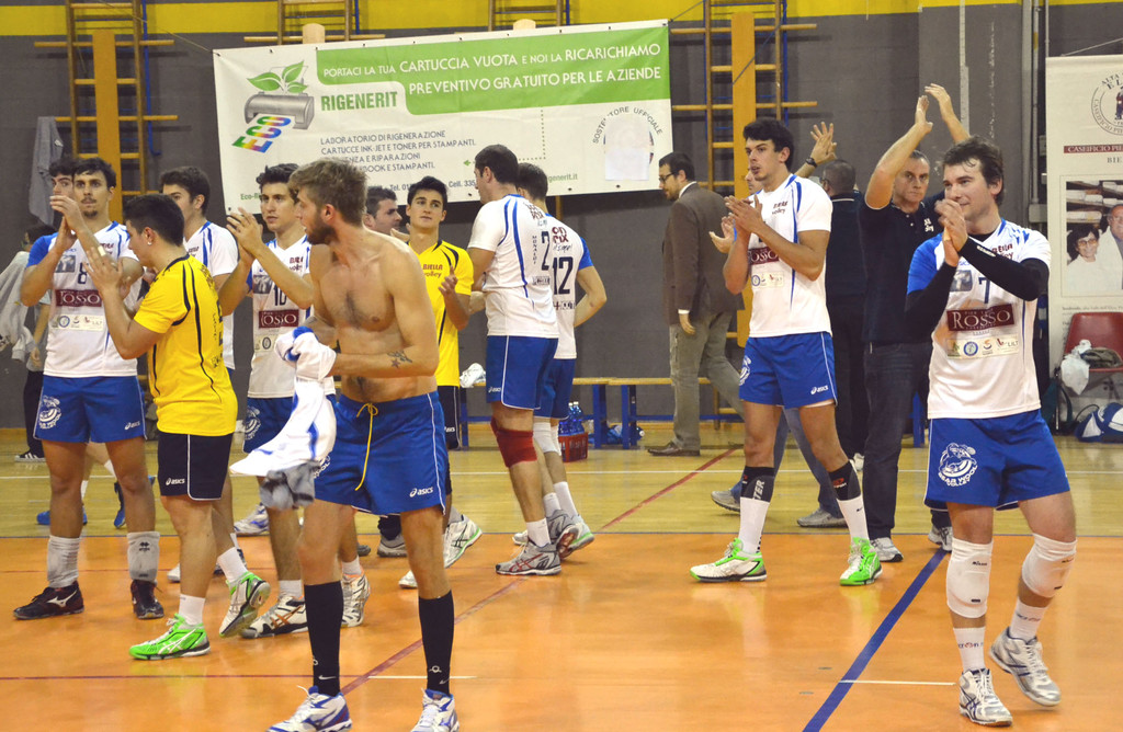Fin dalle prime battute del match il sestetto laniero è parso avere non una, ma due marce in meno rispetto agli avversari. In campo all’inizio con Grosso in regia, Monaldi opposto, Dellarolle e Salvatori al centro, Fracasso e Ricino schiacciatori, Collinetti libero, Biella ha tenuto fino al 6-8 del primo time out tecnico. Poi gli ospiti hanno messo la quinta, ipotecando il parziale già al secondo time out tecnico (10-16) e chiudendo agevolmente sul 17-25 in appena 24 minuti. Coach Barazzotto le prova tutte per cambiare l'inerzia del match, avvicendando praticamente tutta la squadra e inserendo già nel corso del primo set Colombo per Grosso, Grillo per Dellarolle, Comella per Ricino e Platini per Collinetti. I cambi non danno i frutti sperati e il secondo set è la fotocopia del primo: 6-8 alla prima pausa, 10-16 alla seconda e agevole 2-0 per gli ospiti con un eloquente 15-25 in 23 minuti.