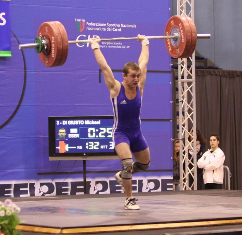 Michael Di Giusto può indubbiamente ambire ad una medaglia nella categoria 62 chilogrammi dove parte con il secondo accredito (110 in Strappo e 135 in Slancio), ma dovrà stare attento all'azzurro Massimiliano Rubino (Jogging, 105+135) e al giovane talento Mirko Zanni (Pes. Pordenone, 105+130) atleta che si allena nella sua stessa palestra a Pordenone e che ha da poco stabilito il record italiano Under 17. Favorito per l'oro Calogero Guarnaccia (Atl. Ercole, 123+138), già vincitore del titolo l'anno scorso con 265 kg (120+145). Al via anche Francesco Certossi (Santa Bona, 102+126), Pasquale Ricci (Natural, 101+127), l'ex azzurro olimpico a Pechino Vito Dellino (Esercito Italiano, 100+125) e Alessandro Bosco (Salus, 104-117) in una gara che si presenta più che mai equilibrata. Assoluto riserbo sugli ultimi risultati ottenuti in allenamento da Di Giusto che in questi ultimi mesi ha preso la decisione di passare dalla categoria 56 kg alla 62 kg, con conseguente cambio di tipologia di allenamento: se ha migliorato i propri limiti lo vedremo domani mattina, quel che è certo è che non dovrà più fare i conti con il proprio peso come accadeva sovente alla vigilia delle gare quando era nella categoria inferiore.