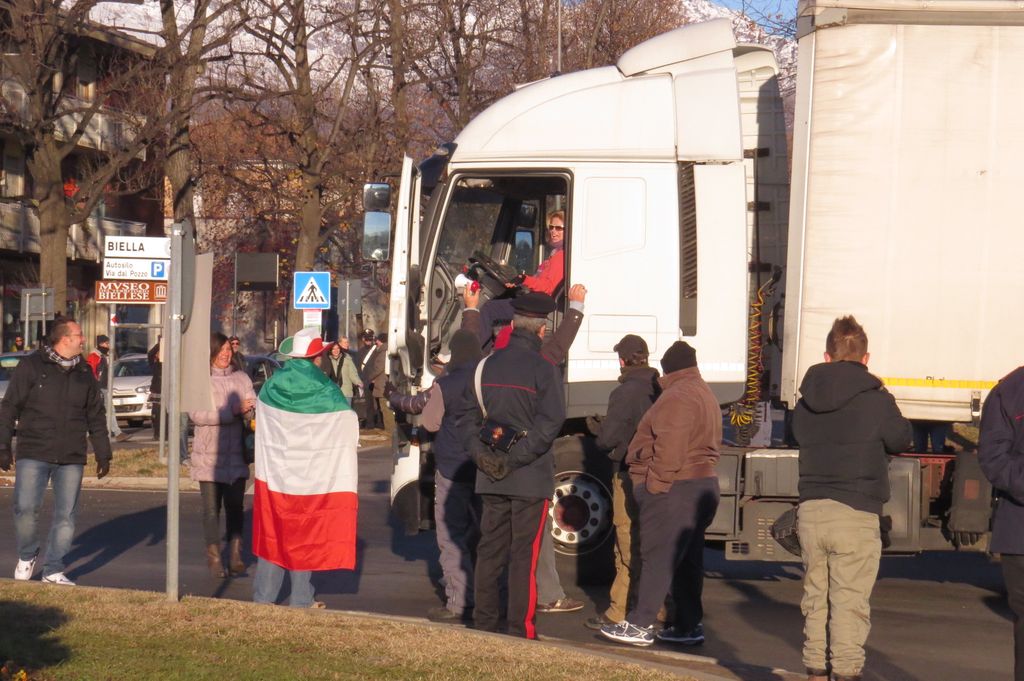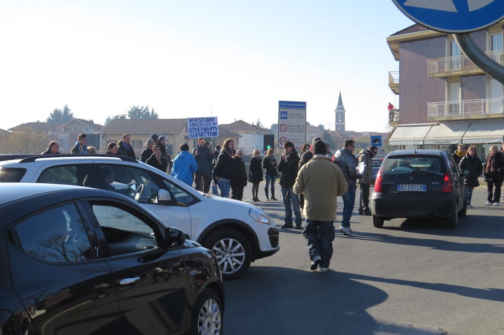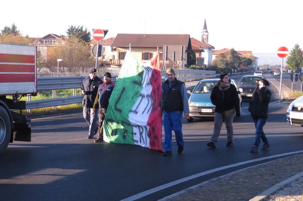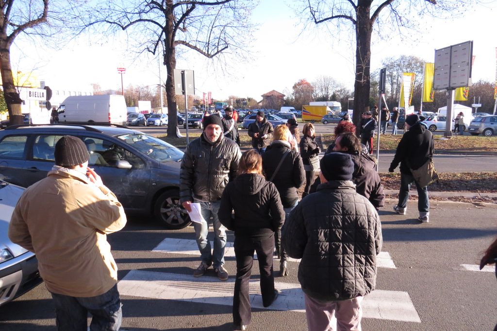 Sono più di quanti erano ieri mattina i manifestanti che si sono riuniti davanti al Mercatone Uno per continuare la protesta del “9 dicembre l’Italia si ferma”. Tanti i volti nuovi, come quelli di alcuni agricoltori di Castelletto Cervo. Mancano invece gli studenti che ancora non si sa se sfideranno nuovamente le possibili ripercussioni dovute a una seconda assenza ingiustificata. La protesta continua in modo ordinato, tanto che a sorvegliare il gruppo non ci sono più gli agenti del reparto Mobile della polizia ed è calata anche la concentrazione di forze dell’ordine. Tra le iniziative spontanee i tanti cori poco benevoli dedicati al sindaco di Cossato Claudio Corradino, che ieri pomeriggio aveva un po’ battibeccato con i dimostranti. Il programma di oggi prevede alle 11 un corteo in direzione della prefettura e quindi l’incontro con il prefetto Missineo. Verso le dieci e trenta aumenta sensibilmente il numero dei presenti. Qualche discussione tra i manifestanti, in particolare tra chi chiede azioni più incisive e chi vuole restare nei parametri delle autorizzazioni rilasciate dalla Questura. Si attende l'arrivo degli studenti. I rappresentanti dei dimostranti sono in attesa davanti alla prefettura di incontrare Missineo. Incontro riservato con il prefetto per i manifestanti.