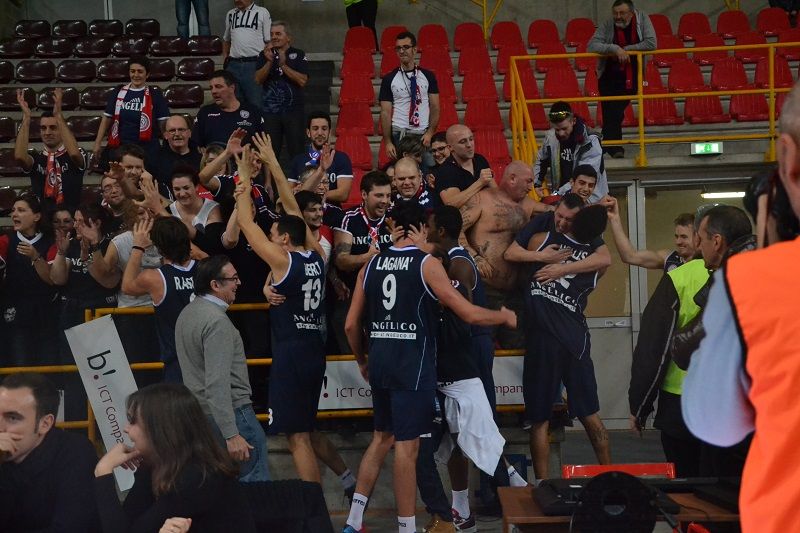 4° QUARTO. Gli ultimi 10 minuti si aprono con il quintetto Berti, Voskuil, De Vico, Hollis, Infante. Subito 4 liberi di Infante scavano il solco (47-57). Smith e Taylor provano a ricucire lo strappo e riportano Verona sul -4 (56-60). Ma è la serata dell’Angelico, perché Gandini va in lunetta per il potenziale -2 ma sbaglia due liberi. Ci pensa ancora Voskuil a chiudere i conti con un canestro da 2 e un gioco da 3 punti (56-65). Il finale è un tripudio, con Biella che chiude in trionfo e i giocatori ad abbracciare la propria curva e il presidente Massimo Angelico. Biella batte Verona 72-59……il sogno continua!!!