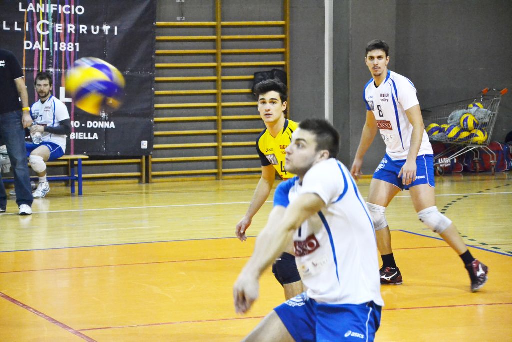 Biella batte un colpo... solo uno purtroppo... ma la squadra vista in campo ieri sera a Candelo nel derby contro il quotato Santhià è stata una lontana parente di quella spesso rinunciataria vista nelle ultime gare. Contro i vercellesi arriva una sconfitta 2-3 che porta, quindi, un punticino in classifica, ma anche la consapevolezza che la squadra c'è e che nel girone di ritorno avrà la possibilità di recuperare quei punti necessari per ottenere la salvezza, obiettivo non così lontano considerando che i punti di divario dal quintultimo posto sono solo 4.Contro Santhià si è vista una squadra arrembante e con la voglia, non solo a parole, di lasciarsi alle spalle le 6 sconfitte consecutive: obiettivo non riuscito, ma ribadiamo, una sconfitta così seppur bruciante lascia spazio ad un cauto ottimismo. L'avvio è dei migliori, tanto che il primo set è perfetto, vinto 25-13 tra l'incredulità del folto e caloroso pubblico che ha gremito completamente il palasport di Candelo, per un terzo proveniente da Santhià. In campo per Biella Colombo in palleggio, Monaldi opposto, Fracasso e Ricino di banda, Salvatori e Grullo al centro con Collinetti libero.