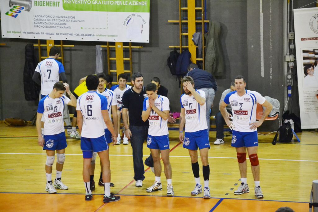 Il tabellino. Biella Volley-Santhià 2-3 (Parziali: 25-13, 17-25, 21-25, 39-37, 15-7). Biella Volley. Colombo 3, Monaldi 27, Ricino 4, Fracasso 18, Salvatori 21, Grillo 1, Collinetti (L), Grosso 1, Scalzo, Dellarolle 4, Pavan, Comella 2. Ne: Platini. Allenatore: Barazzotto. Santhià: Farina 2, Signorelli 21, Salussolia 4, Manavella 10, Riviera 14, Rigamonti 16, Zinetti 1, Vincenzi 0, Rizzotti 0. Libero: Pagliasso. Ne Gullino e Pisani. All. Manavella.