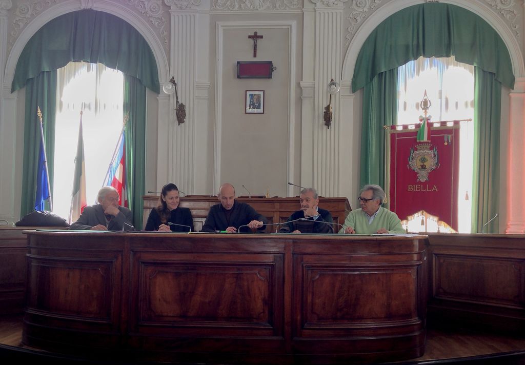 Seduti nel banco dedicato a sindaco e assessori questa mattina gli ultimi rappresentati del carnevale di Biella e dei relativi comitati di Riva, Chiavazza, insieme all'assessore Gaggino e la direttrice del centro commerciale gli Orsi Angela Berto hanno presentato alla stampa il calendario del Carnevale nella sala del consiglio comunale.
