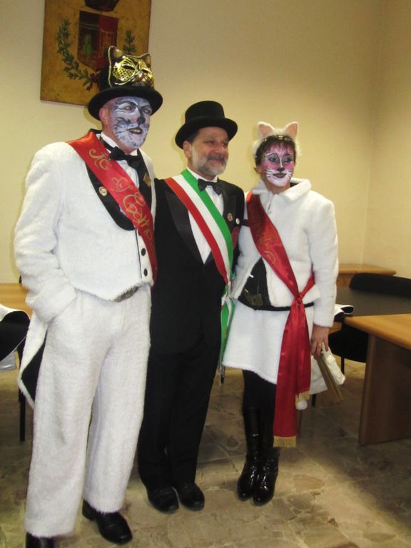 Nata nel 1957, la maschera di carnevale di Tollegno inizialmente prevedeva solo la parte maschile del Gatto, alla quale poi col tempo è stata affiancata una compagna per non lasciarlo solo, la Micia. Di certo, nell’origine di queste due figure carnevalesche c’è solo questo: il perché all’epoca si scelse di chiamarli così e non castellano e castellana, o contadino e contadina non è chiaro, in paese vi sono solo delle supposizioni o leggende che chiamar le si voglia. C’è infatti chi dice che il Gatto e la Micia debbano la loro nascita al fatto che Tollegno è sempre stato considerato il paese dei gatti, per via dei tanti felini che lì si aggirano; altri sostengono invece che esso sia un’invenzione in onore della filatura del paese, la Lana Gatto e altri ancora fanno riferimento al nome latino di Tollegno: Tolle-lignum, togliere il legno. Secondo questi ultimi, i fondatori del centro abitato, facendo pulizia per insediarsi hanno tagliato piante e spostato legna trovandovi al di sotto tanti gatti. Da qualunque parte la si guardi, insomma, la costante rimangono sempre i piccoli amici a quattro zampe, presenti nella memoria popolare da sempre: ecco quindi spiegato il perché non potevano che il Gatto e la Micia diventare il simbolo del carnevale di Tollegno.