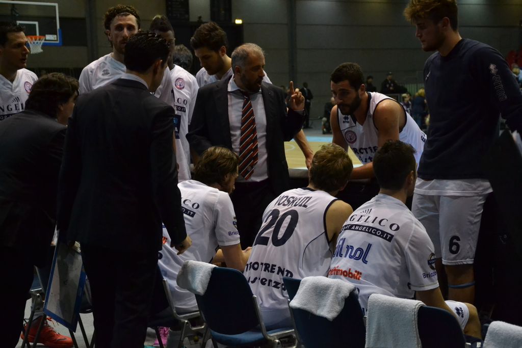 3° QUARTO. Angelico in campo con Berti, Voskuil, De Vico, Hollis e ChilloInizio in salita per Biella, che dopo 3 minuti ha realizzato appena 2 punti contro i 6 dell’Upea (48-49). Chillo prende un rimbalzo d’attacco e converte in 2 punti, Hollis segna da 2 e un Bloise glaciale punisce dalla lunga per un nuovo tentativo di fuga di Biella (55-49). Ancora una volta però Mays estrae dal suo cilindro una bomba (55-52). Bloise e Voskuil però sono caldissimi e mettono altri tre siluri. Il terzo quarto si chiude con l’Eurotrend avanti 65-57.