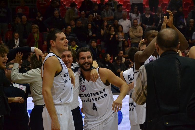 L'Angelico-Eurotrend Biella entra nell’albo d’oro della Pallacanestro Nazionale battendo 100-94 l’Aquila Basket Trento dopo 45 minuti di battaglia epica e conquistando l’Adecco Cup edizione 2014. Capitan Raspino e compagni hanno regalato emozioni indescrivibili ai propri tifosi, emozioni che a fine partita sono sfociate in lacrime di gioia: piange Simone Berti (che ha commesso un errore sull’ultima azione dei regolamentari ma è stato il solito eroe), piange capitan Raspino, in campo 43 minuti come il più instancabile dei gladiatori, piangono i dirigenti, su tutti Massimo Angelico, l’uomo grazie al quale Biella è ancora parte del panorama cestistico Nazionale e piange coach Fabio Corbani, il condottiero che è riuscito a trasformare un gruppo di giovani di belle speranze in una Squadra vincente. Simone Berti fa fatica a parlare per l’emozione nell’immediato dopo partita ma ha ancora fiato per commentare l’impresa della sua squadra: “Stasera ci siamo dimostrati la squadra migliore del lotto. Abbiamo lottato nelle difficoltà senza mai perdere la nostra caratteristica principale, l’essere un grande gruppo, nel quale tutti sanno darsi una mano”.