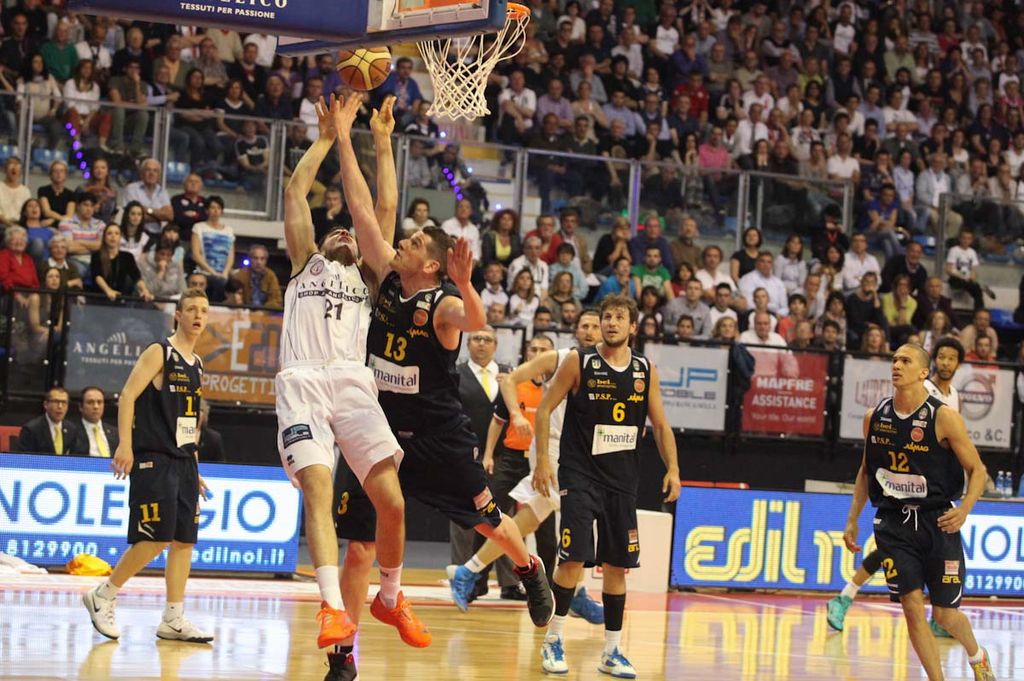 L’inizio di secondo quarto accende il Forum: Lombardi stoppa Evangelisti e vola a schiacciare dall’altra parte del campo, provocando la reazione euforica di Corbani che si becca un tecnico mai visto per eccessiva esultanza. Dopo un’1/9 da 3 punti mai visto quest’anno al Forum, una tripla di Giacomo Bloise riporta la sua squadra a contatto (26-30). Torino si dimostra però superiore e ritrova subito il ritmo scappando sul 30-39 con un grande Mancinelli. Chillo trova un gioco da 3 punti per il -6 (33-39), prima che l’ex capitano azzurro però si becchi un tecnico. A chiudere meglio il primo tempo è Biella, che trova una triplissima con De Vico per il 37-41 della pausa lunga. Il terzo quarto è quello fatale per l’Angelico Biella: alla prima azione Damian Hollis trova il -2 con un bel canestro mancino (39-41), ma è solo un’illusione. La Manital prende pieno possesso del match: una tripla di Mancinelli apre il parziale “ammazza-partita di 16-0 che in 3 minuti manda in orbita gli ospiti e all’inferno Biella, sotto di 18 punti (39-57) ma soprattutto incapace di dettare il ritmo della partita. Una timida reazione con la tripla di Hollis e il canestro di De Vico vale il -13. Ma proprio De Vico, dopo Chillo, sigla il secondo 0/2 del quarto dalla lunetta, presagio di una serata nella quale il canestro è stato molto più stretto del solito per capitan Raspino e compagni.