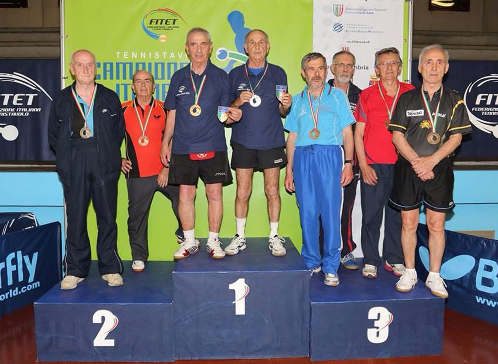 Nei veterani Gilberto Rollino è stato l'unico rappresentante biellese ed ha disputato un ottimo torneo. Nel doppio maschile ha conquistato la medaglia di bronzo, in coppia con l’ossolano Mura, fermato soltanto dalla coppia vincitrice del titolo italiano. Bene anche nella gara di singolo (70-75) con una vittoria nel girone, magnifica, sull'atleta di 4ª categoria Tabellini, per poi uscire, al quinto set, dal comasco Magatti.