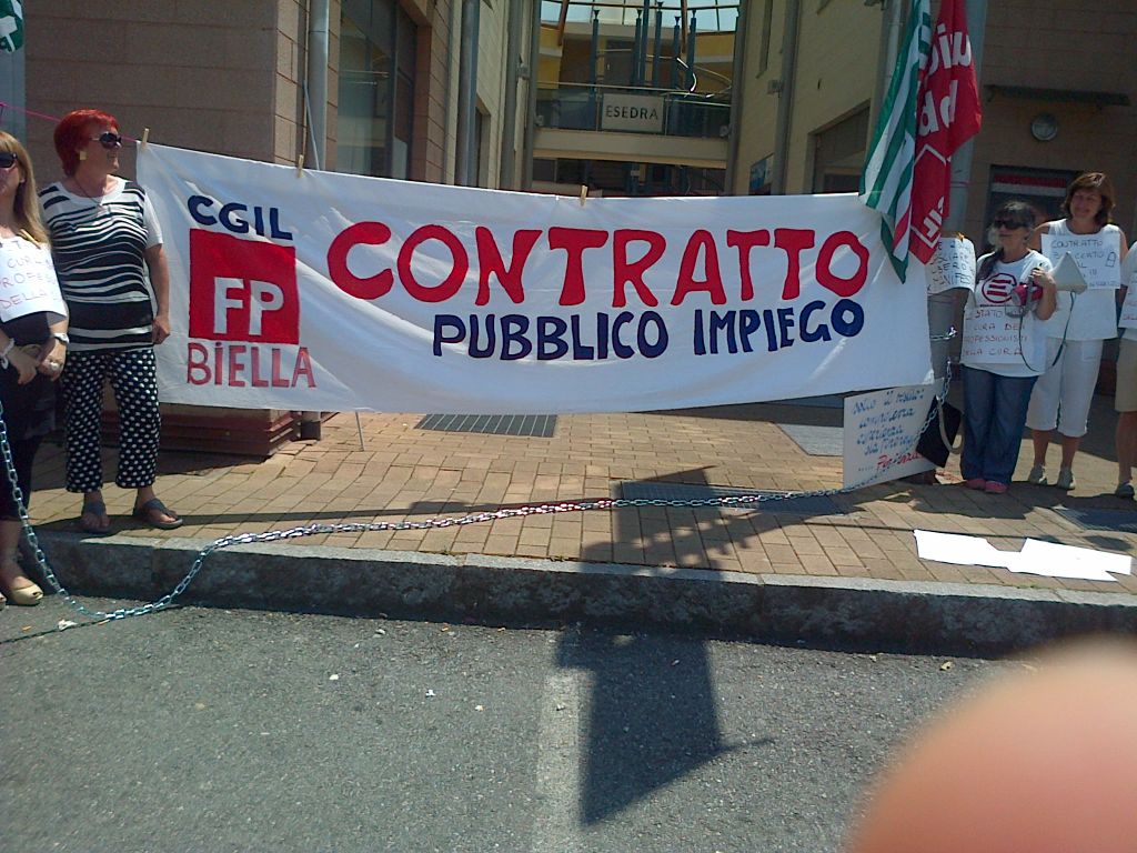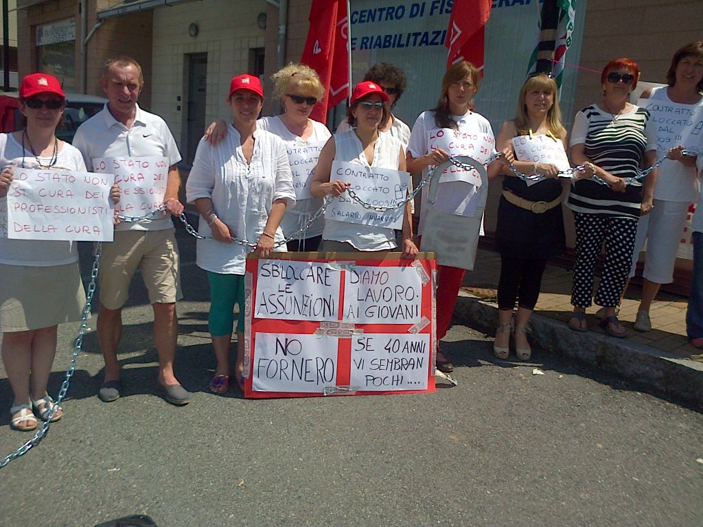 Si sono simbolicamente incatenati davanti alla loro sede i lavoratori Cissabo, che nel primo pomeriggio di oggi hanno protestato per ottenere il rinnovo del contratto nazionale e contro la legge Fornero. La manifestazione è stata messa in campo dalle rappresentanze sindacali della funzione pubblica di Cgil e Cisl e dai lavoratori del consorzio, al fine di contrastare la riforma delle pubbliche amministrazioni, che Matteo Renzi vorrebbe attuare.