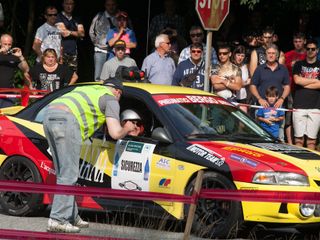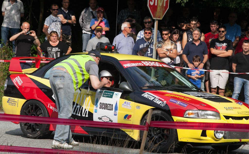 Prima frazione molto combattuta, spesso giocata sul filo dei decimi di secondo, che danno la provvisoria supremazia all'equipaggio formato dai biellesi Davide Negri e Roberto Coppa su Audi Quattro Gruppo B autori del miglior tempo sulla prima prova. Dalla terza lo hanno ceduto per un solo decimo di secondo ad un veloce Elwis Chentre il quale in coppia con Andrea Canepa sulla Porsche 911 RSR Gruppo 4 ha condotto per tre prove la gara e solo nell'ultimo crono ha ceduto il comando al duo dell'Audi: terminata l'ultima prova arriva però la notizia che hanno consegnato la tabella di marcia a causa di problemi meccanici non risolvibili per poter rientrare in gara nella seconda frazione di domenica. Il distacco dopo una sessantina di chilometri era di solo un secondo e quattro decimi. Passa così secondo il bresciano “Pedro” in coppia col toscano Emanuele Baldaccini partiti un po' cauti sulla prima “Baltigati” con la Lancia Rally 037 Gruppo B e comunque ancora in lizza per il successo finale; alle loro spalle Erik Comas con Jean Noel Vespertini sulla Lancia Stratos, autore di due successi parziali e staccato di soli un secondo e sei decimi.