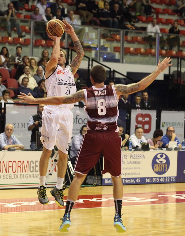 Biella vince su tutti i fronti, pur in una serata nella quale il tiro da tre punti (specialità della casa) non entra come al solito (9/29 alla fine). L’emblema della completezza nel gioco rossoblù è il bomber Alan Voskuil: fermo al palo dalla distanza (0/8 dopo aver fatto 14/29 nelle prime due partite), riesce comunque a giocare una partita solida, sfruttando i raddoppi della difesa di Ferentino su di lui creando per i compagni (9 assist) e per se stesso (6/8 da 2 e 6 falli subiti). Gli mvp della partita alla fine sono un sontuoso BJ Raymond (25 punti e 27 di valutazione con 10/13 al tiro nei primi 3 quarti) e un sempre più sorprendente Erik Lombardi: l’ala rossoblù, al cospetto di un giocatore esperto e quotato come Omar Thomas, ha sfoderato una prestazione da campione sia in difesa che in attacco, chiudendo con 19 punti, 5 rimbalzi, 4 assist, 3/5 nelle triple e 23 di valutazione.