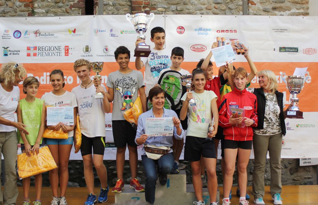 A salire sul gradino più alto del podio Alessandro Caucino, Emily Siviero, Rebecca Menchini, Fulvio Pellerei e Luigi Morra: i cinque frazionisti della squadra A dell'IC Cossato hanno impiegato complessivamente 14'59"8 a correre i 4 chilometri del percorso (800 metri a testa) battendo in volata la squadra A dell'Istituto Comprensivo di Gaglianico, formata da Federica Perri, Leonardo Marucchi, Benedetta Miglietti, Alessandro Farina e Martino Bona arrivata a meno di un secondo (15'00"1).