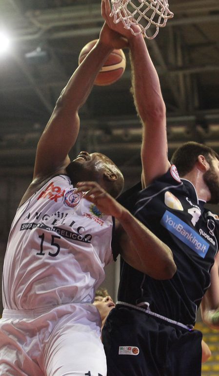 Una tripla di Carrizzo sembra mantenere l’inerzia della partita dalla parte degli ospiti (12-24) ad inizio secondo periodo, ma Biella trova sul fondo del barile le energie per iniziare a risalire la china: l’uomo della prima rimonta è ancora una volta Alan Voskuil, che senza il dolore alla caviglia che l’ha condizionato nelle ultime settimane, ritrova la sua proverbiale mira e piazza le due triple che permettono all’Angelico di chiudere sul -6 il primo tempo. Una tripla del cubano Sant Roos al rientro dagli spogliatoi illude gli ospiti, che da lì in poi però finiscono in balia di Biella: la squadra di Corbani infatti ritrova per strada lo smalto delle prime partite stagionali e sulla difesa costruisce un parziale di 10-0 che le da il primo vantaggio sul 36-34.