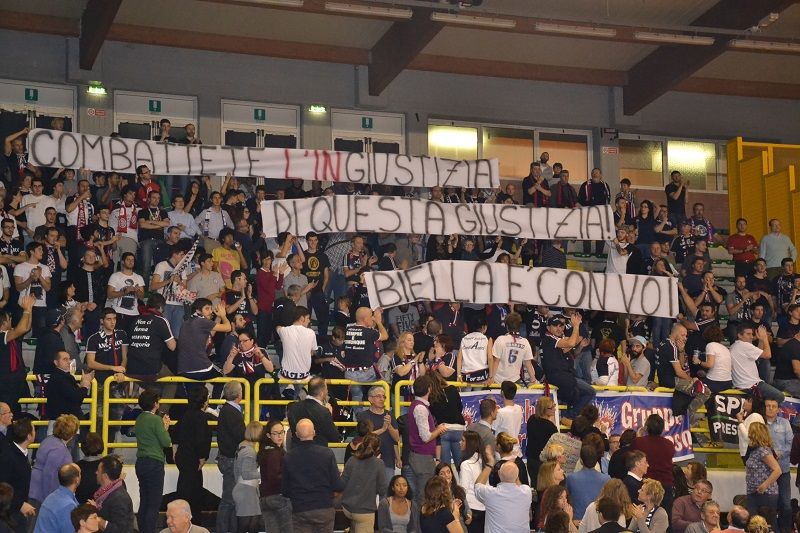 Il match inizia con 5 minuti di ritardo, dopo un commovente omaggio al g.m. di Pallacanestro Biella, con i capi delle due tifoserie a consegnare un omaggio alla famiglia di Fioretti e le due squadre unite al centro del campo, con il nome “Gabri” sulle magliette di tutti e 20 i giocatori.