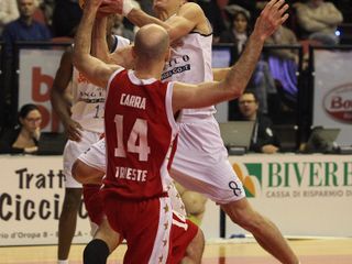 In difficoltà contro la rapidità dei piccoli di Trieste. Prova ad arrangiarsi con il mestiere ma fa tanta fatica.