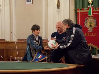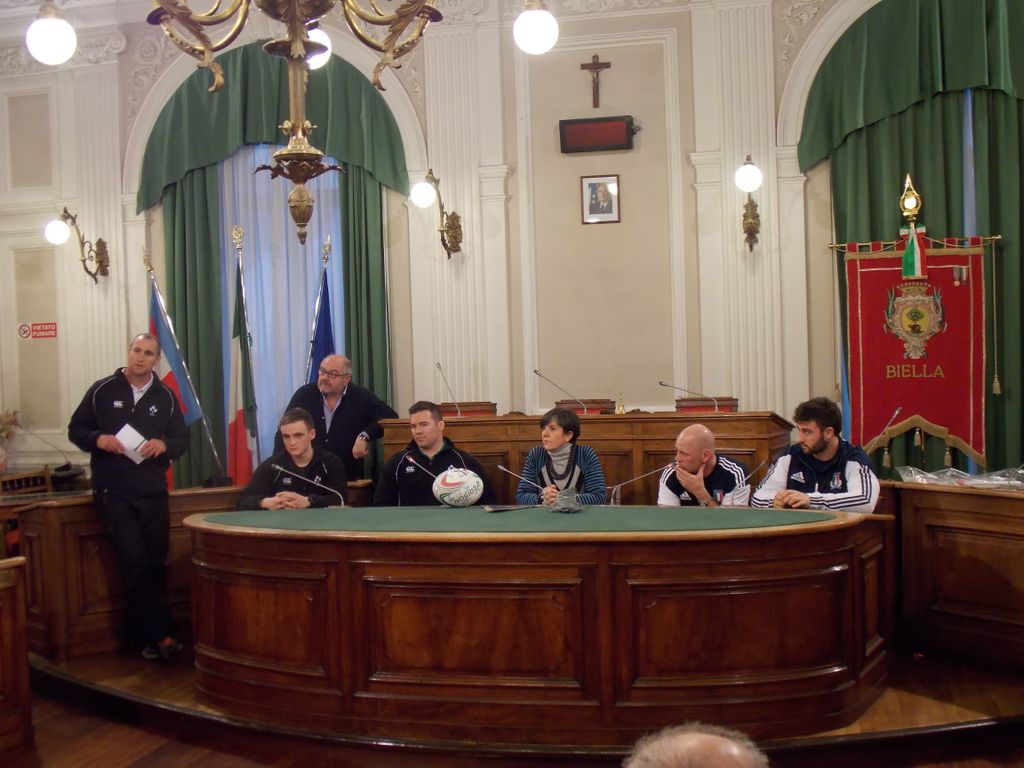 I ragazzi della nazionale italiana sono pronti alla partita di domani che si svolgerà con qualsiasi condizione meteo. Si sono preparati ad affrontare un campo difficile a causa dell'abbondante nevica che pare, domani si trasformerà in pioggia e ad aprire le danze del torneo più importante affrontando un avversario altrettanto tosto: la nazionale irlandese. Si aprirà così il trofeo Sei Nazioni Under 20 di rugby che, domani, parte ospite di Biella. Oggi pomeriggio la sala consiglio del palazzo comunale ha ospitato la presentazione dell'evento reso possibile grazie all'impegno del Biella Rugby e che porterà in città decine di tifosi e appassionati. A dare il benvenuto a capitani e allenatori l'assessore allo sport Teresa Barresi. "Siamo onorati di ospitare in città un evento di questa portata. Ringrazio il Biella Rugby per l'opportunità e domani, sarò in campo a tifare Italia". A lei, la nazionale italiana ha voluto donare un gagliardetto ed un pallone con gli autografi dei giocatori oltre ad un invito speciale alla partita e al "terzo tempo". "Un Italia agguerrita e preparata ma soprattutto, motivata a dare il massimo per dimostrare quanto vale di fronte ad una delle squadre di altissimo livello"queste le parole del responsabile tecnico Alessandro Troncon. Vedere per credere domani alle 19 allo stadio Pozzo-Lamarmora. La partita sarà trasmessa in diretta su Rai 1. Il costo del biglietto è di 5 euro, gratis per under 18.