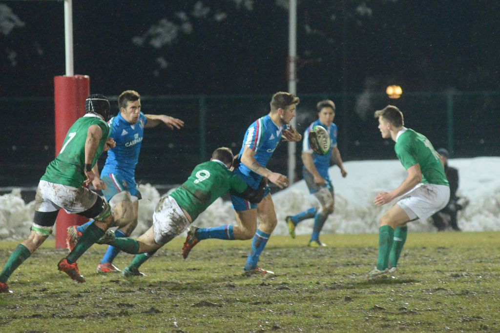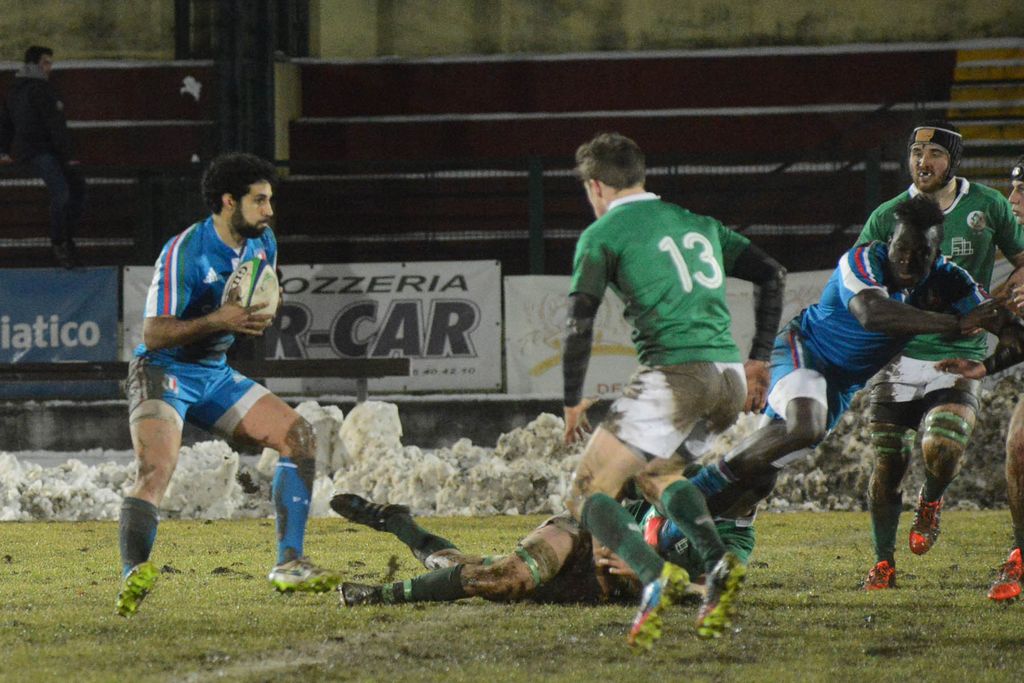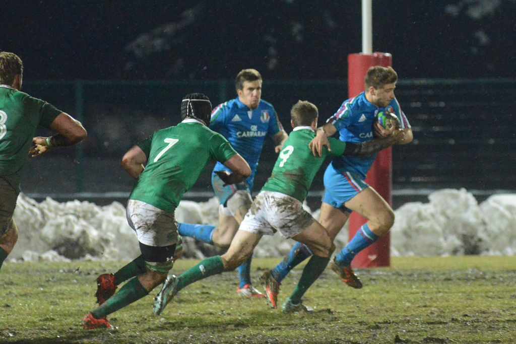 Un buon avvio di gara non basta agli Azzurrini, in vantaggio con una bella meta di Bergamin dopo nemmeno due minuti di gioco, per tenere in mano le redini dell’incontro: gli ospiti infatti replicano immediatamente mettendo in moto la propria rolling maul, che si dimostrerà motore principale delle offensive irlandesi per il resto del match.