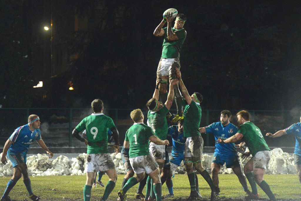 Marcatori: p.t. 2’ m. Bergamin tr. Azzolini (7-0); 6’ m. Murphy tr. Byrne (7-7); 11’ cp. Azzolini (10-7); 16’ cp. Ringrose tr. Byrne (10-14); 28’ m. Moloney tr. Byrne (10-21); 31’ m. Sperandio (15-21); 38’ m. McCall tr. Byrne (15-28); s.t. 4’ m. Dardis (15-33); 22’ m. McCarthy tr. Byrne (15-40); 38’ m. Romaine tr. Bryne (15-47)