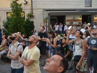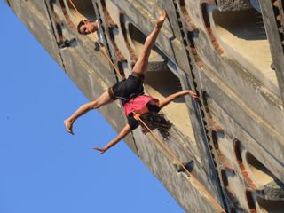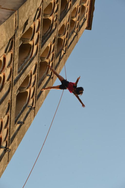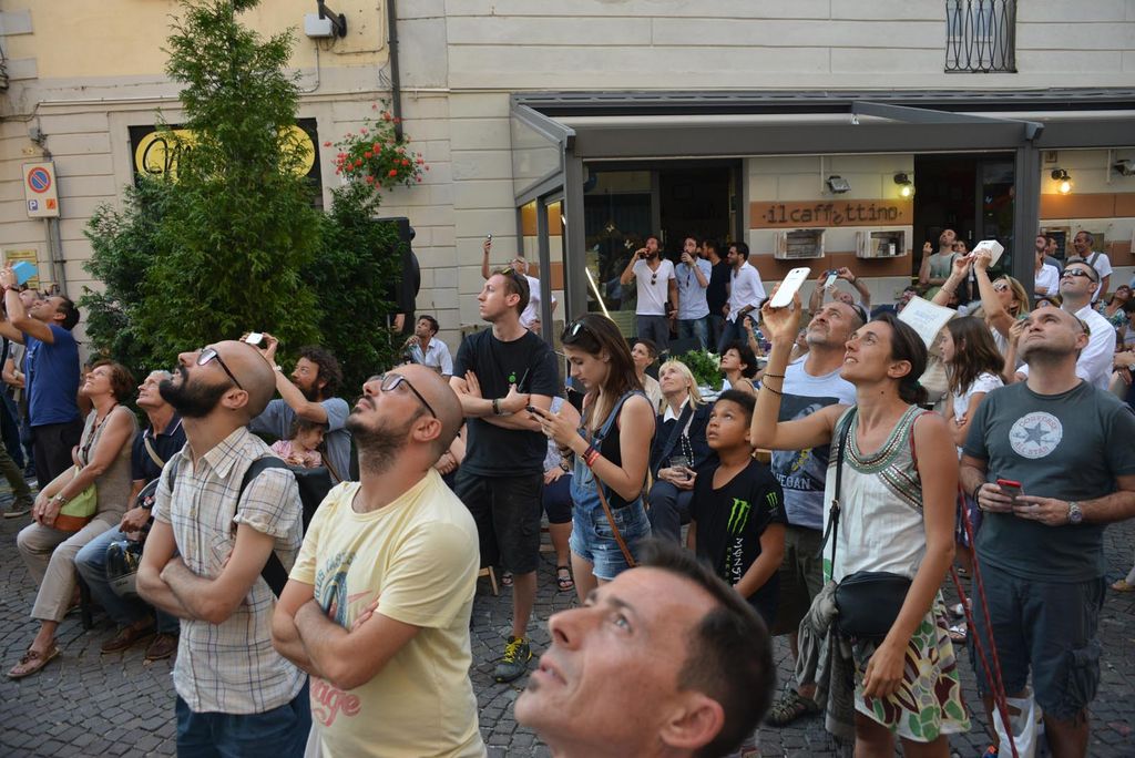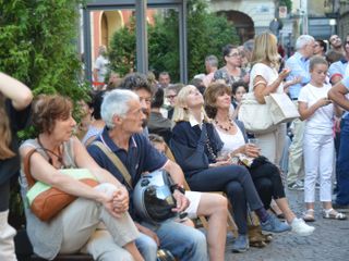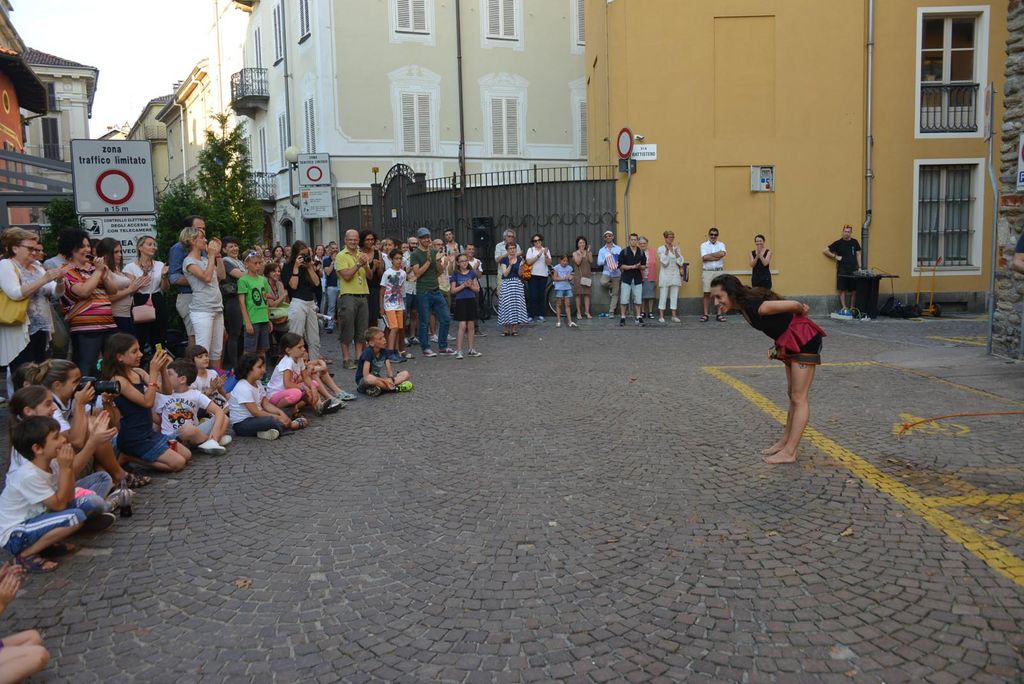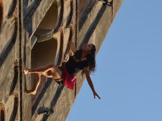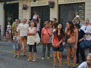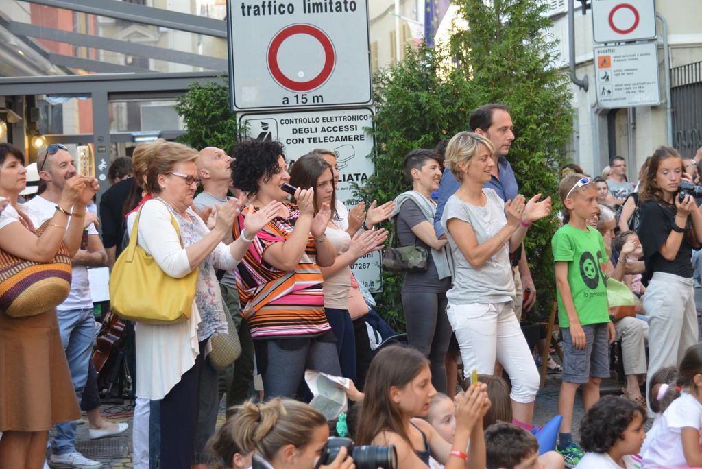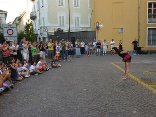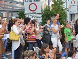 E se già le accurate coreografie eseguite nelle vetrine di vari negozi hanno tenuto incollato il pubblico, la danza verticale di Erika Bettin, che si è esibita librandosi sulle pareti del campanile di Santo Stefano ha scatenato un entusiasmo assolutamente giustificato.