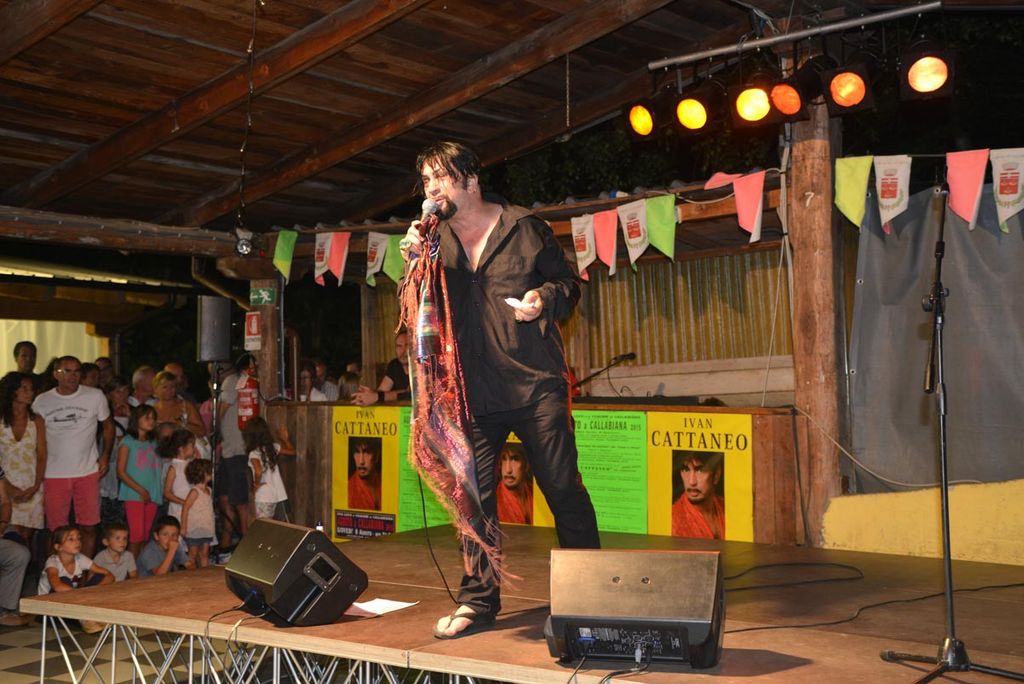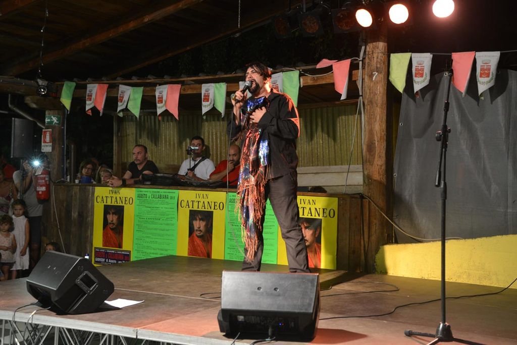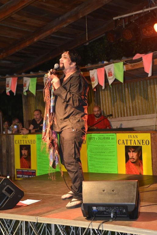 L’aspetto un po’ imbolsito non è più quello di un tempo, e vederselo arrivare in infradito e camiciotto da solo sul palco della festa di Callabiana non faceva ben sperare. Ma è bastato che ivan Cattaeo iniziasse a cantare e a muoversi perchè l’atmosfera cambiasse completamente grazie all’allegria del revival canzonettaro che dell'interprete è il marchio di fabbrica.