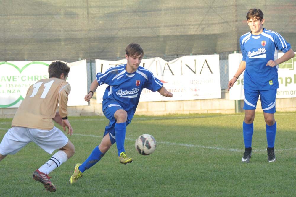 Prima azione con un tiro sballato di Dovana poi gli ospiti al 5' calciano un angolo e il colpo di testa è a lato. Al minuto 11 arriva lo svantaggio, ancora i valdenghesi in avanti con la palla in mezzo e Cagnoni per liberare svirgola e insacca un pallonetto a fil di palo. Quattro minuti dopo nuovo pericolo e deve uscire a valanga Guzzone sull'uomo che si era presentato solo davanti a lui. Al 22' occasione per Ottino solo in area che tenta un diagonale che si spegne sul fondo e un minuto dopo in mischia tira sul portiere. Ancora un pericolo al 34' con un avversario in area pronto a tirare ma arriva Rosso da dietro a strappargli il pallone. Allo scadere Rega pesca lungo Dovana che centra per Lucia atterrato in area da dietro. Rigore e sulla palla va Rosso che angola anche bene ma il tiro non fortissimo viene toccato dal portiere in tuffo. Sul pallone si avventa Fiorini e insacca. Al 46' un rigore c'era anche per gli avversari per un'ingenuo fallo in area di Ferrero ma l'arbitro lascia correre.