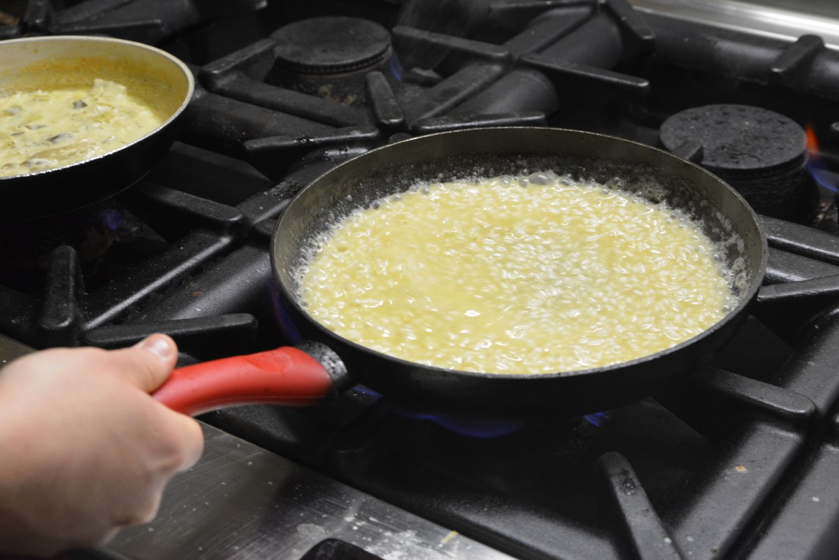 “Per un ottimo risotto – continua lo chef della “Prosciutteria San Daniele” – le regole da rispettare sono semplici. Il riso deve essere di varietà Carnaroli, perché tiene bene la cottura. Non guardare mai l’orologio, ma assaggiare sempre quello che si sta cucinando. E, infine, mantecare il riso con parmigiano e burro a fine cottura, e a fuoco spento”.