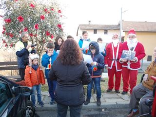 Come è tradizione a Ternengo si è svolta anche quest’anno la GIORNATA DEGLI AUGURI. Gli aiutanti di Babbo Natale della Pro Loco con la collaborazione delle associazioni del paese, domenica 20 dicembre hanno visitato, a bordo di una bellissima carrozza trainata da due cavalli bianchi e di uno stupendo pick-up Chevrolet rosso, le frazioni del paese, per animare tante festicciole, distribuendo alla popolazione il nuovo calendario con storiche immagini degli antichi mestieri e lasciando piccoli regali ai bambini. I bambini a loro volta hanno decorato la giornata con ripetute esibizioni di canti natalizi sotto l’esperta direzione di Lucia Ioppolo. Conclusione nel tardo pomeriggio nella sede della Pro Loco quando, a sorpresa, sono stati premiati due anziani soci, Anna Maria Quaglino e Sandro Masiero, già sindaco di Ternengo: nonostante le ottanta primavere sono ancora un esempio di dedizione e di impegno; sono sempre in prima fila in tutte le iniziative della Pro Loco.