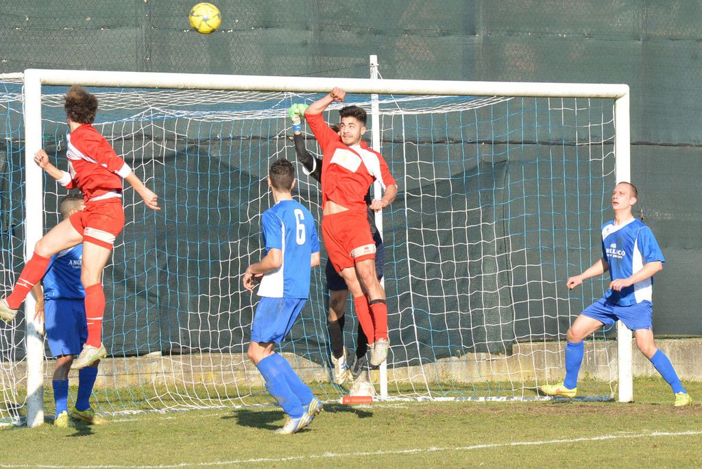 La Fulgor Ronco Valdengo fa suo il derby casalingo contro la Biogl/Valmos per 3-2. Ospiti in vantaggio con Pellerei bravo a saltare di testa sul corner di Ottimo. Poi Marazzato inizia il suo show personale: al 33’ il numero nove degli azzurri insacca in mezza rovesciata. Nella ripresa trasforma dal dischetto la massima punizione concessa per fallo di mano di Torello. E infine, dopo la momentanea rete del 2-2 segnata da Franguelli, è ancora lui a siglare il gol decisivo su cross di Torta. Sul 2-2 grande occasione per gli ospiti ma Ottino si fa respingere il tiro dal dischetto da Quaglino.