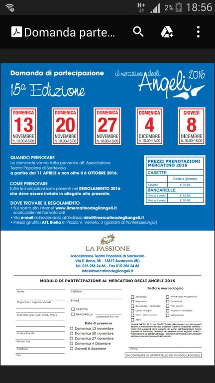 A grande richiesta è già partita la campagna iscrizioni per gli espositori del Mercatino degli Angeli di Sordevolo del 2016. Sono molte le richieste di partecipazione già sin d'ora visto che il successo dell'evento è noto e l'affluenza di tante persone fa gola agli espositori dicembrini.