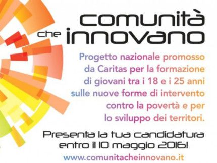 Comunità che innovano è un progetto nazionale per il coinvolgimento e la formazione dei giovani sulle nuove forme di intervento contro la povertà e lo sviluppo dei territori. Ha lo scopo di dare ai giovani gli strumenti per diventare attori dell’innovazione sociale, della cittadinanza attiva e dello sviluppo locale. E' destinato ai giovani tra i 18 e 25 anni interessati a operare nel settore sociale come volontari, cittadini, giovani imprenditori, operatori del terzo settore o del settore pubblico e Enti locali; e a partecipare al percorso formativo biennale proposto.