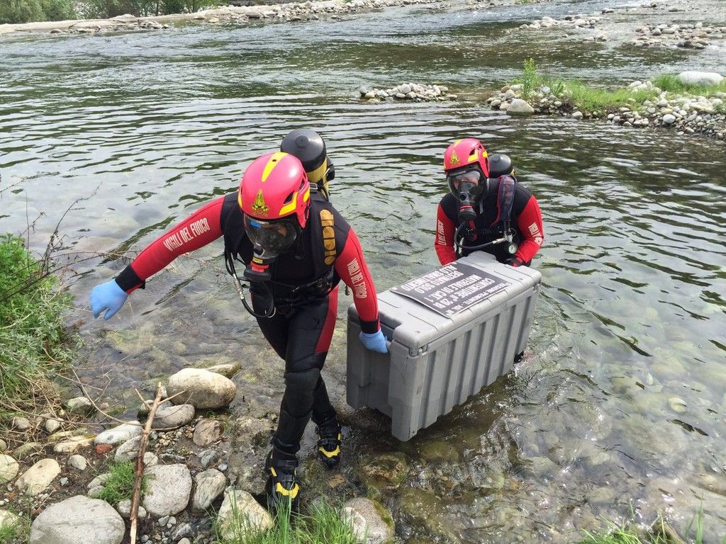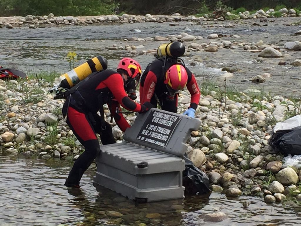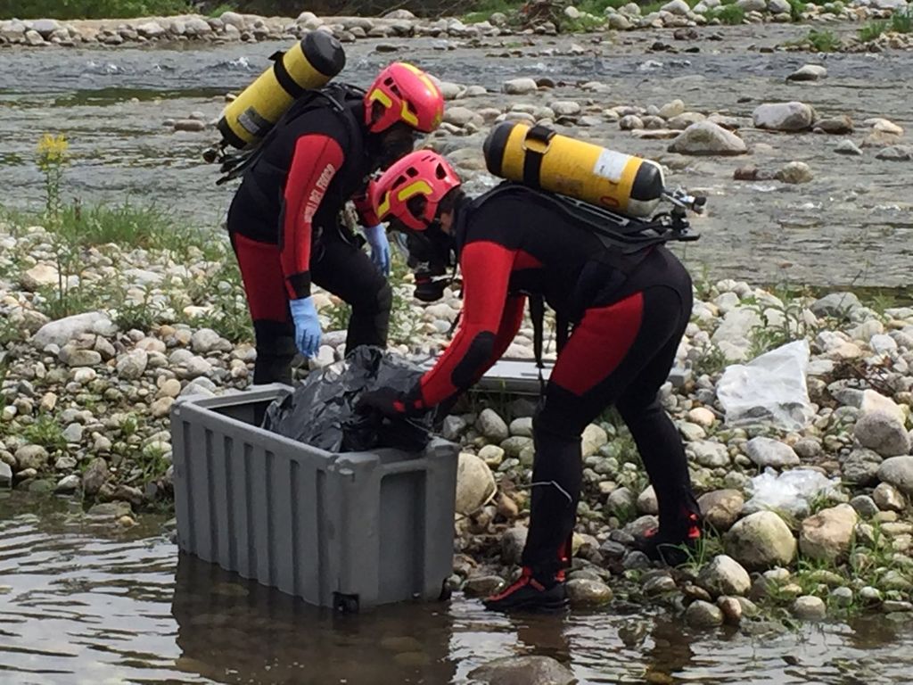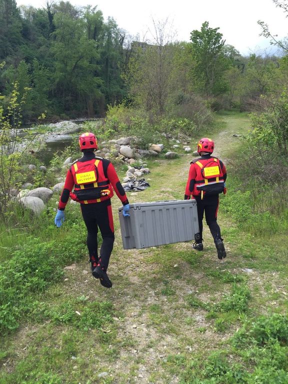 La squadra fluviale dei vigili del fuoco di Biella è intervenuta oggi pomeriggio, giovedì 21 aprile, lungo il greto del torrente Cervo a Chiavazza, per recuperare la carcassa di un cane di grossa taglia. Sul posto sono giunti anche i volontari del canile di Cossato, che non sono riusciti a riconoscere la razza dell’animale.