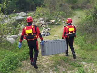 La squadra fluviale dei vigili del fuoco di Biella è intervenuta oggi pomeriggio, giovedì 21 aprile, lungo il greto del torrente Cervo a Chiavazza, per recuperare la carcassa di un cane di grossa taglia. Sul posto sono giunti anche i volontari del canile di Cossato, che non sono riusciti a riconoscere la razza dell’animale.