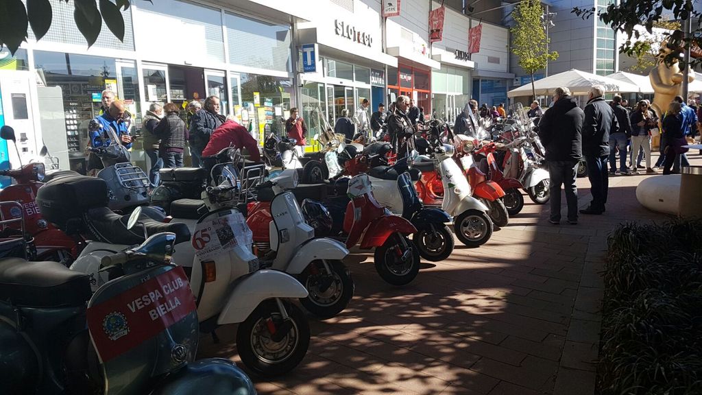 Ultimo giorno di festa per la ricorrenza dei 70 anni della Vespa. Oggi, lunedì 25 aprile, dopo due giorni al "Vespa Village", la manifestazione organizzata dal Vespa Club Biella si trasferisce al centro commerciali Gli Orsi.