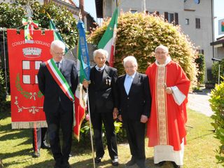 Alle 9,45 si è svolto nel cortile comunale il concerto della Banda musicale Giuseppe Verdi, seguito dalla sfilata alla chiesa parrocchiale e dalla benedizione delle Corone. Dopo la messa delle 10,30 si è tenuta la tradizionale cerimonia della deposizione delle corone d'alloro al Monumento dei Caduti e l'omaggio alla Lapide. Hanno partecipato alla manifestazione anche gli alunni dell’Istituto Comprensivo Cesare Pavese, oltre ai cittadini, all'aministrazione comunale e alle varie associazioni del paese.
