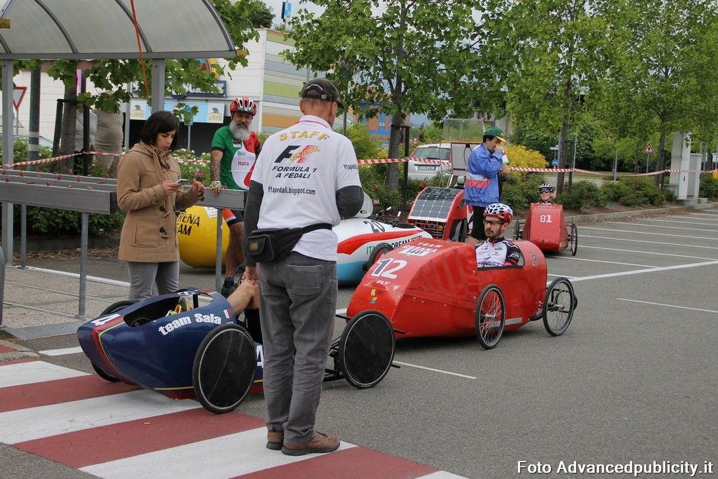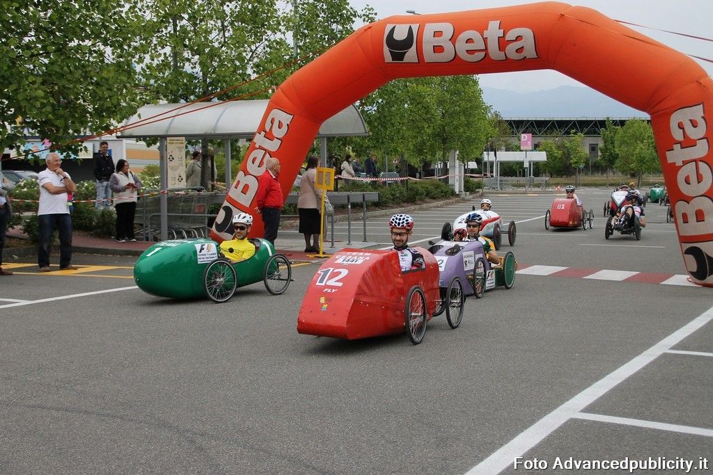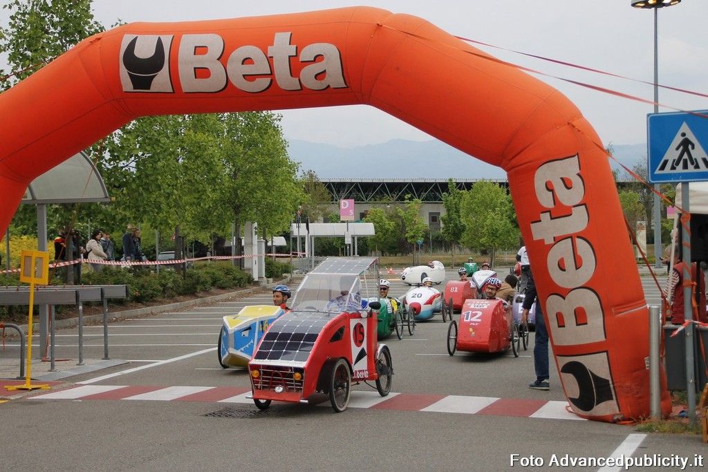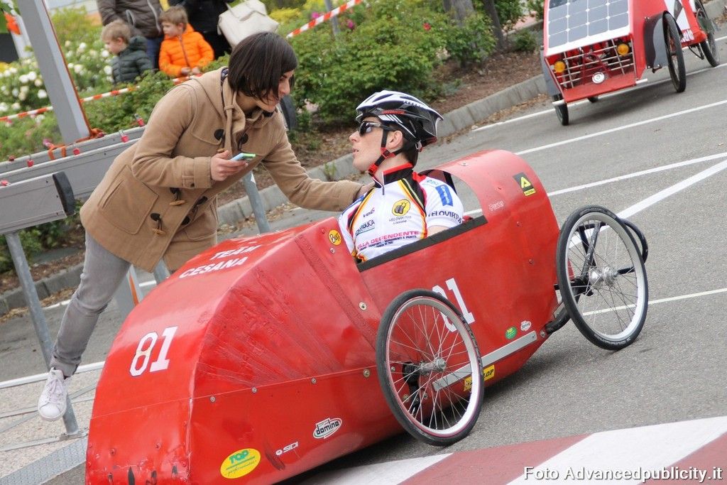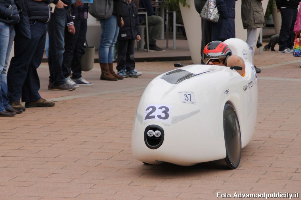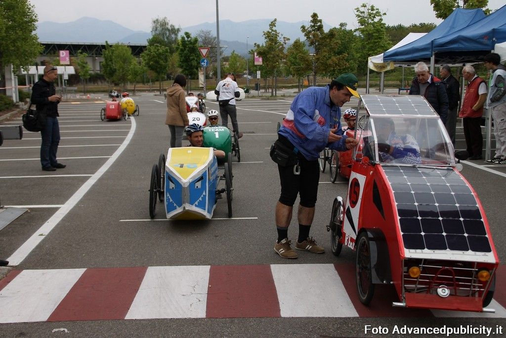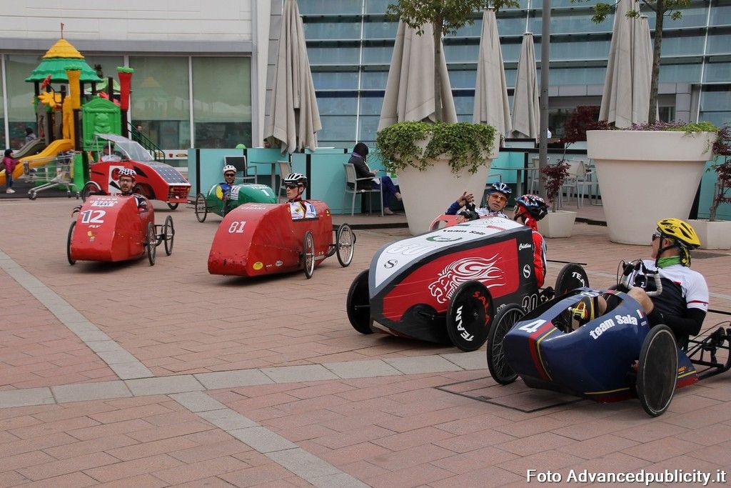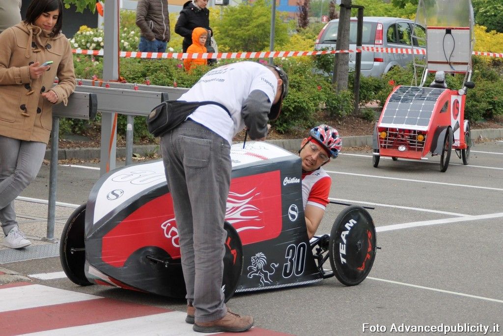 15 equipaggi si sono sfidati sul circuito ricavato nei parcheggi del centro, una gara emozionante e avvincente ma silenziosa e senza emissioni inquinanti. Le auto in gara, infatti, corrono grazie solo all'energia dei piloti che pedalano velocissimi dimostrando al pubblico che ci si puo' divertire e competere nel rispetto dell'ambiente e mettendo in campo volonta', resistenza e allenamento fisico.