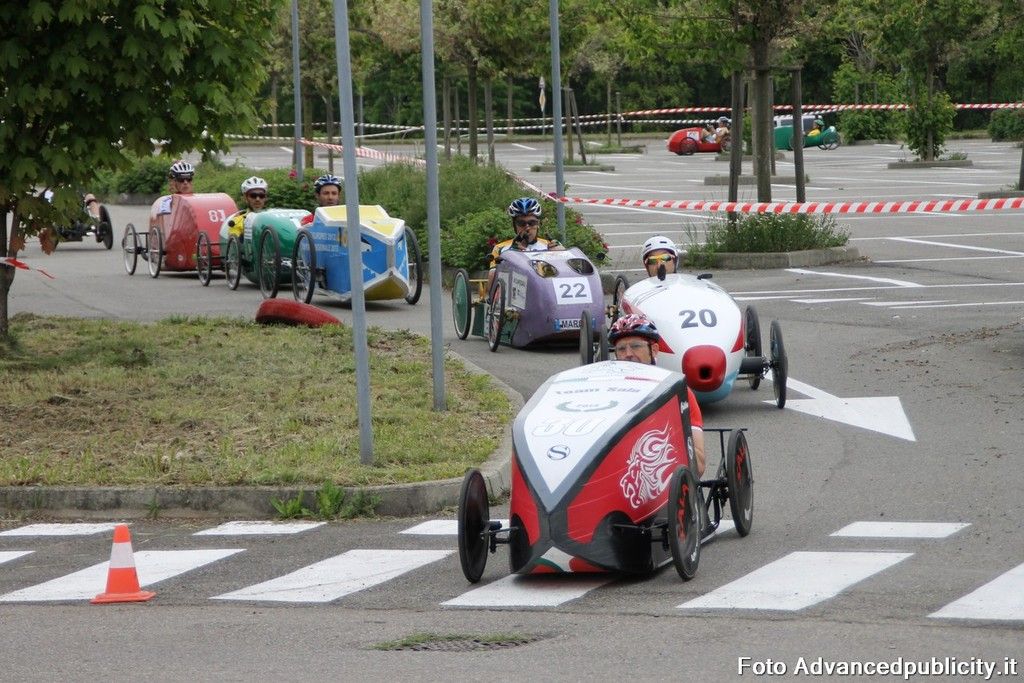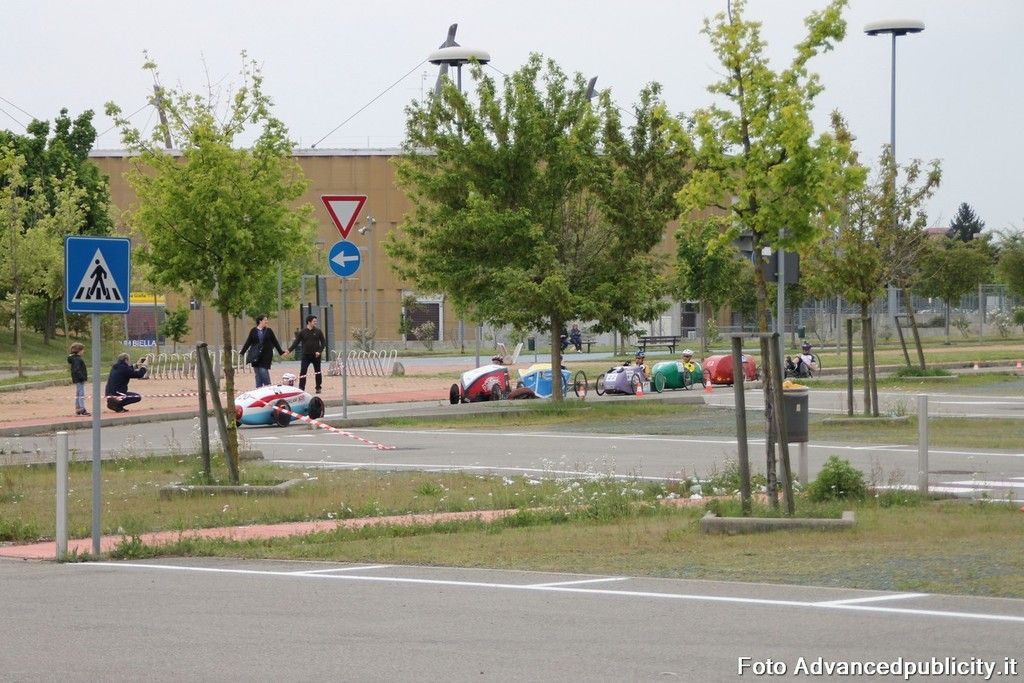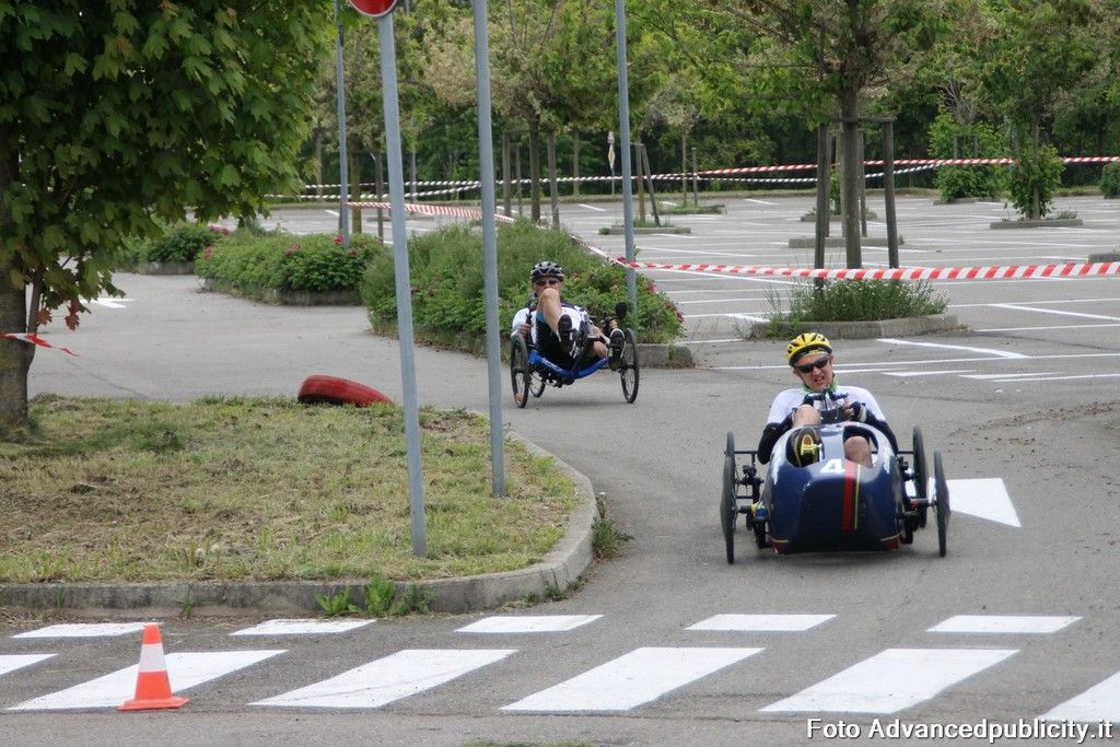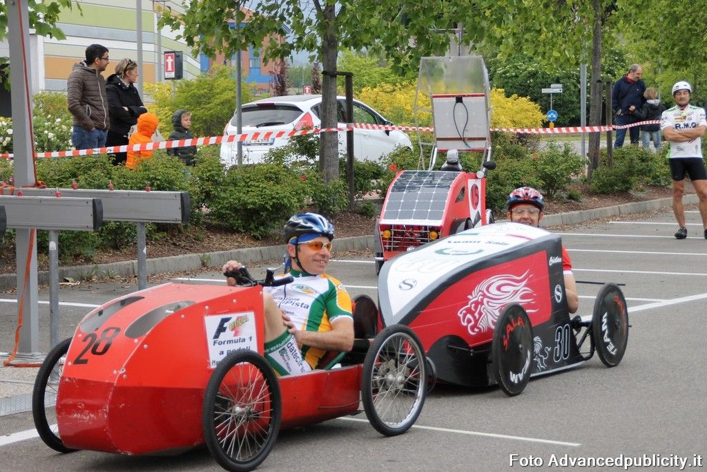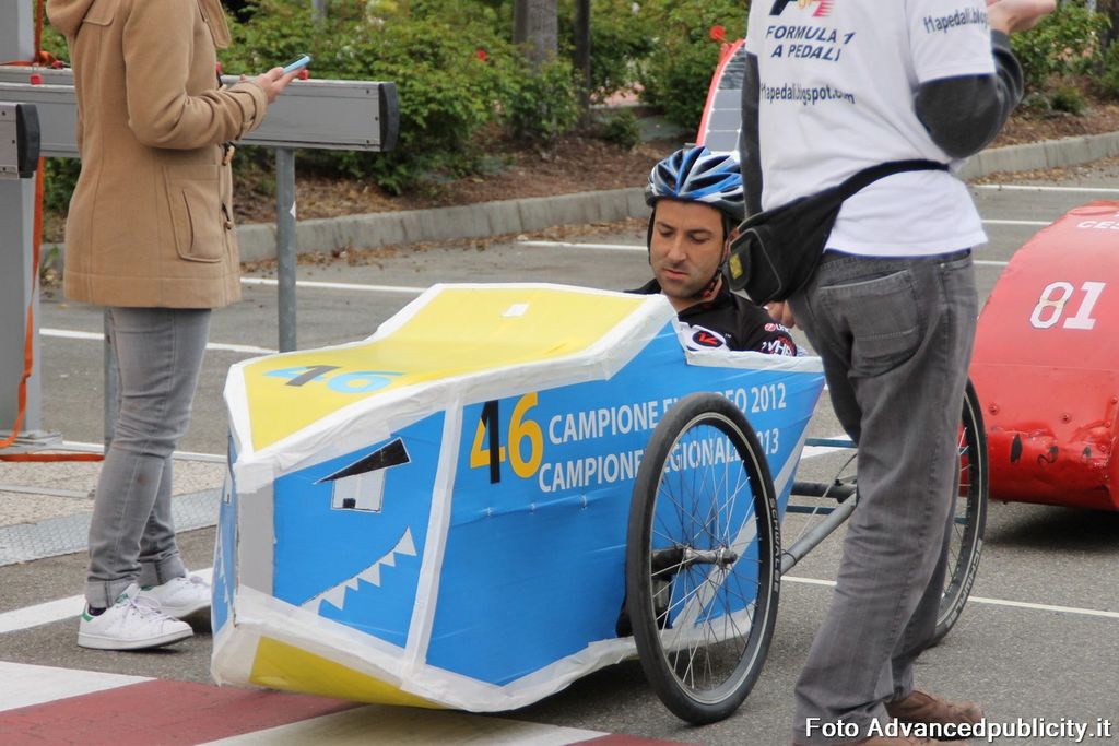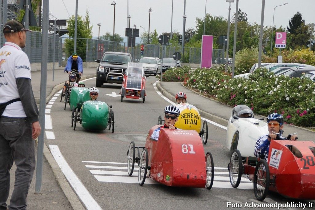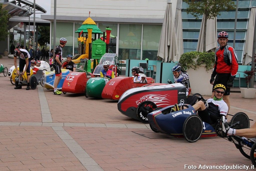 15 equipaggi si sono sfidati sul circuito ricavato nei parcheggi del centro, una gara emozionante e avvincente ma silenziosa e senza emissioni inquinanti. Le auto in gara, infatti, corrono grazie solo all'energia dei piloti che pedalano velocissimi dimostrando al pubblico che ci si puo' divertire e competere nel rispetto dell'ambiente e mettendo in campo volonta', resistenza e allenamento fisico.
