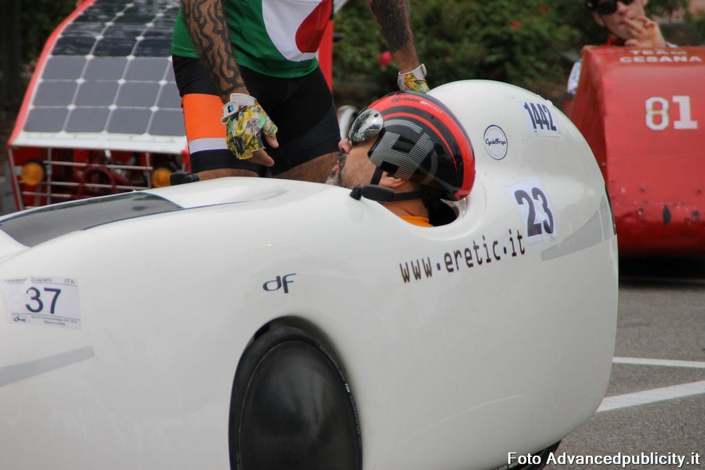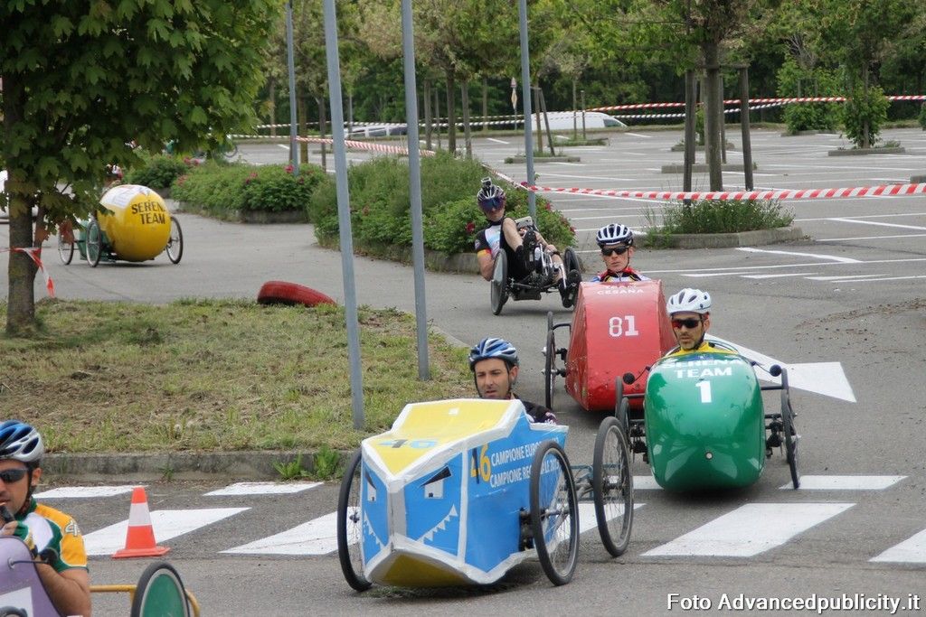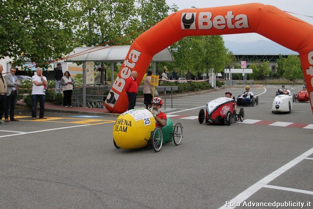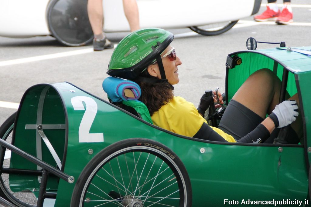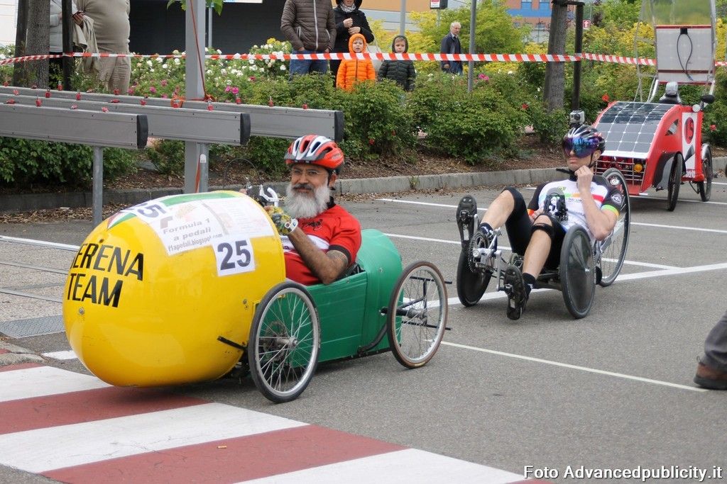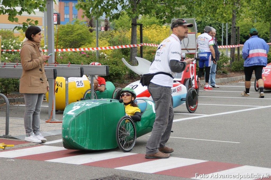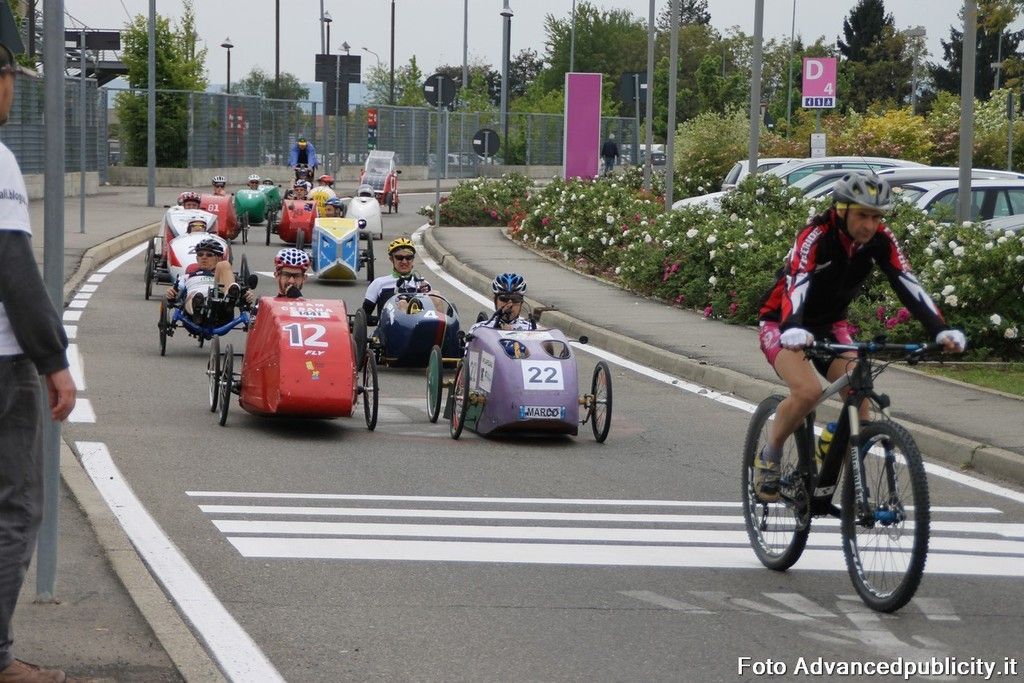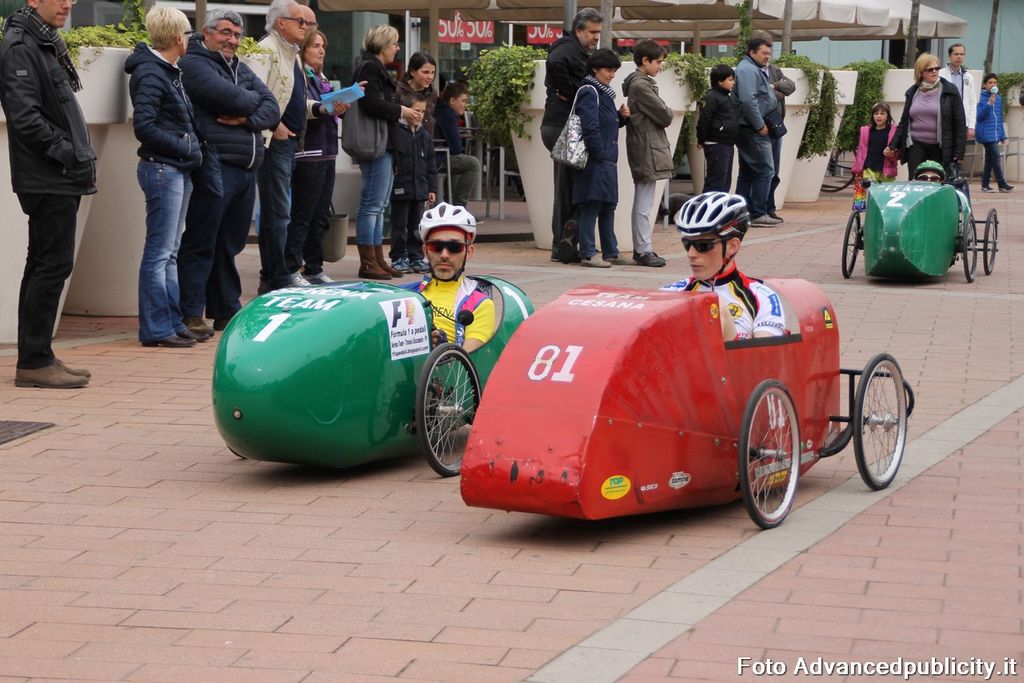 15 equipaggi si sono sfidati sul circuito ricavato nei parcheggi del centro, una gara emozionante e avvincente ma silenziosa e senza emissioni inquinanti. Le auto in gara, infatti, corrono grazie solo all'energia dei piloti che pedalano velocissimi dimostrando al pubblico che ci si puo' divertire e competere nel rispetto dell'ambiente e mettendo in campo volonta', resistenza e allenamento fisico.