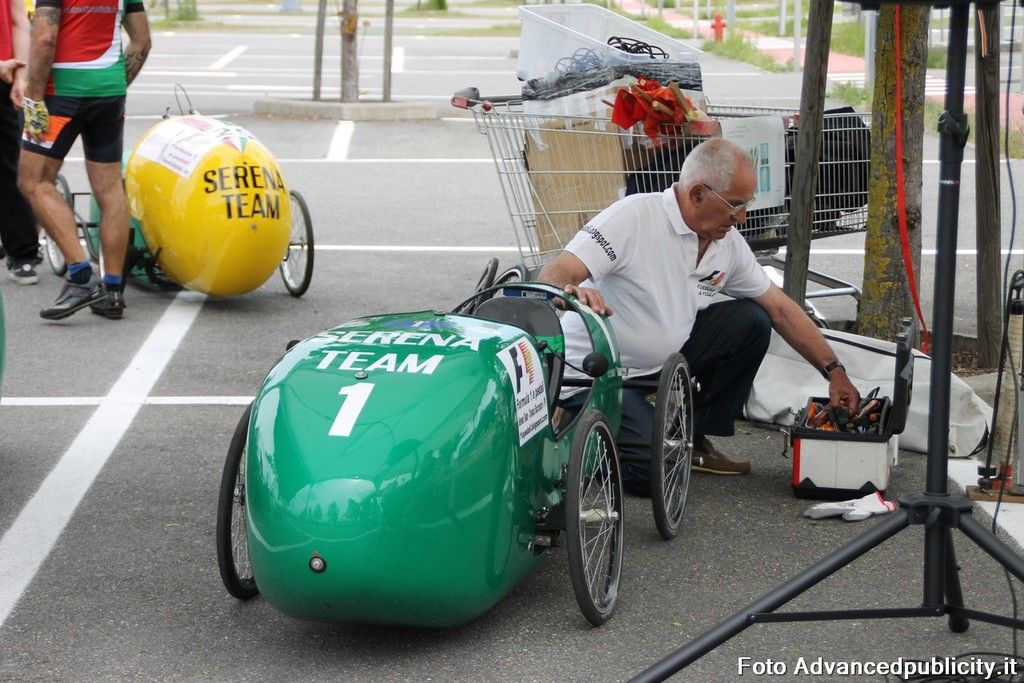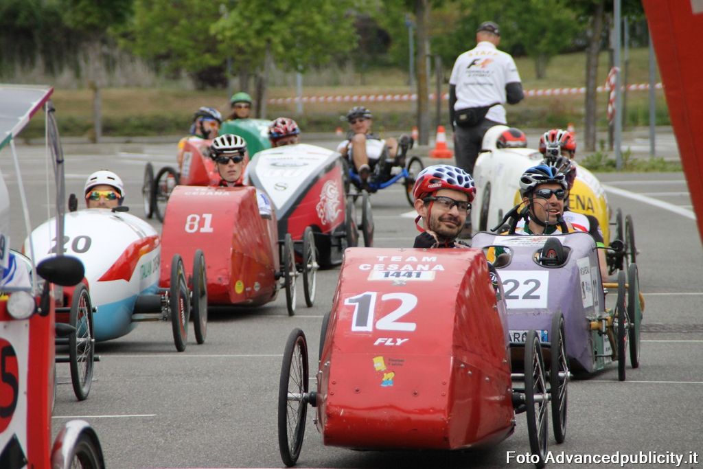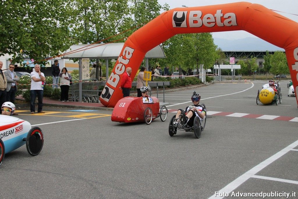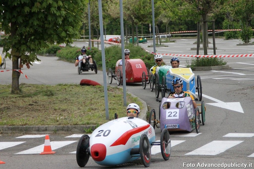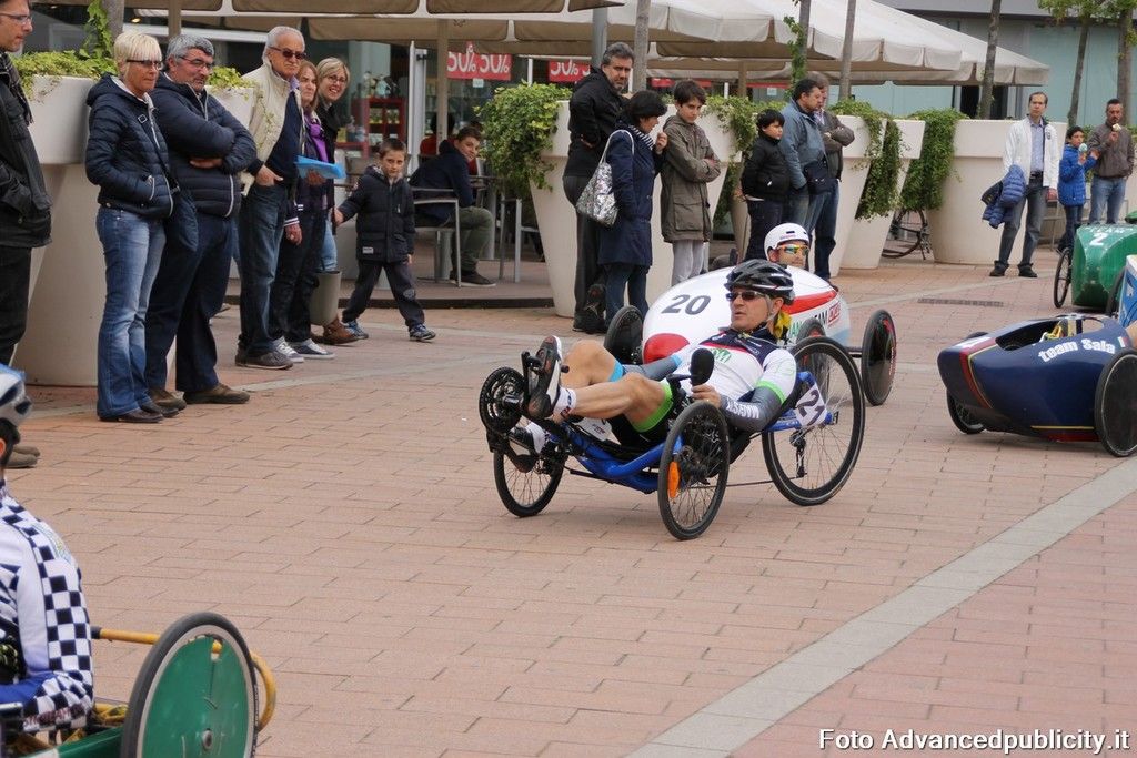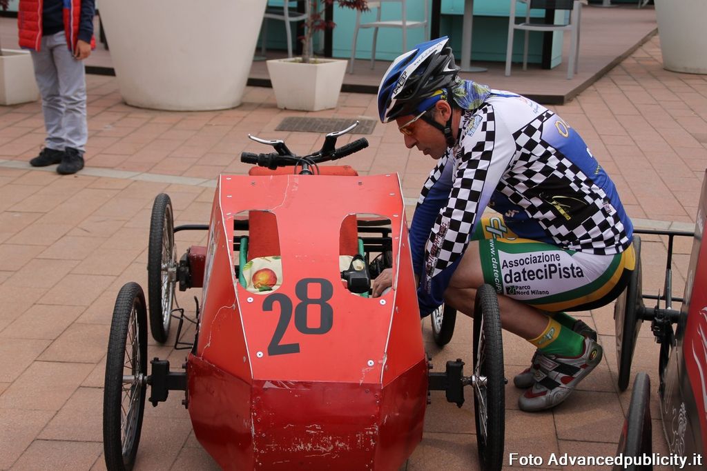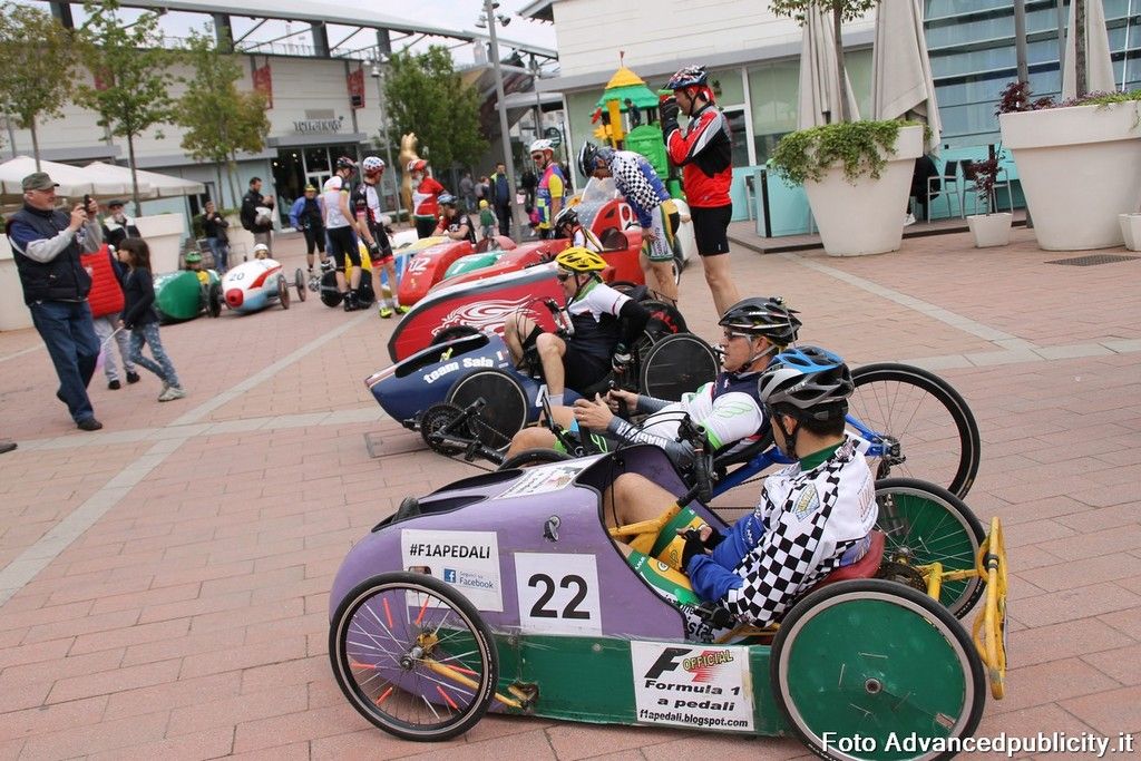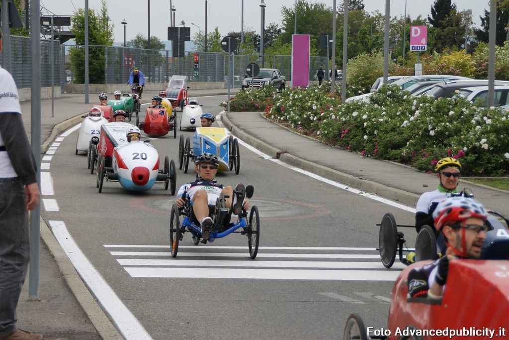 15 equipaggi si sono sfidati sul circuito ricavato nei parcheggi del centro, una gara emozionante e avvincente ma silenziosa e senza emissioni inquinanti. Le auto in gara, infatti, corrono grazie solo all'energia dei piloti che pedalano velocissimi dimostrando al pubblico che ci si puo' divertire e competere nel rispetto dell'ambiente e mettendo in campo volonta', resistenza e allenamento fisico.