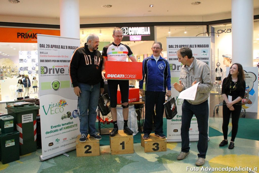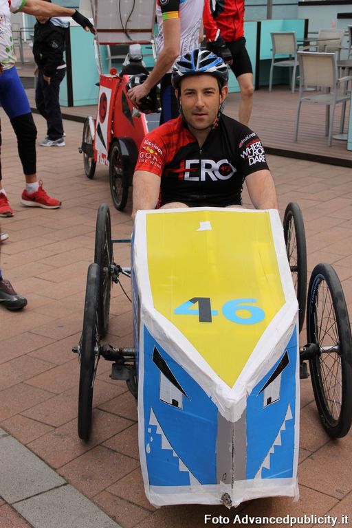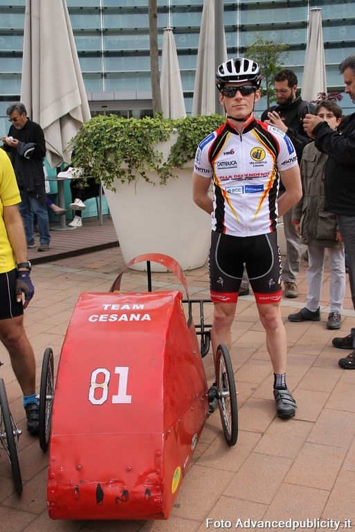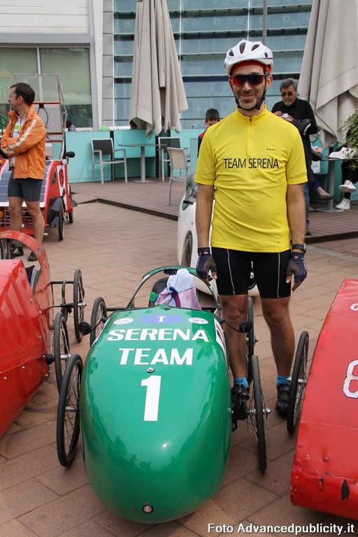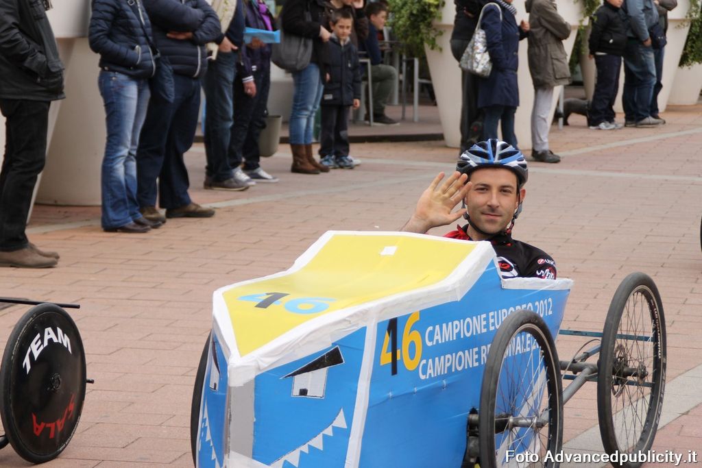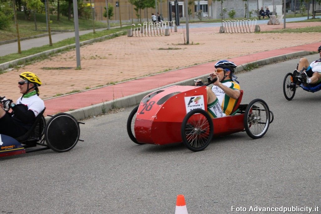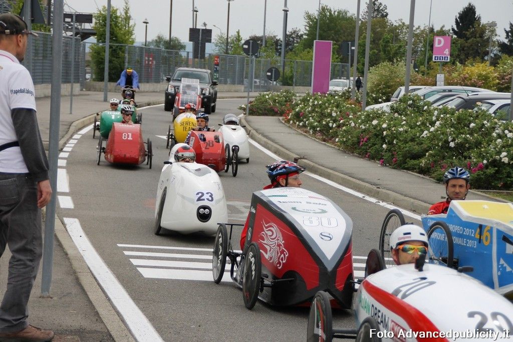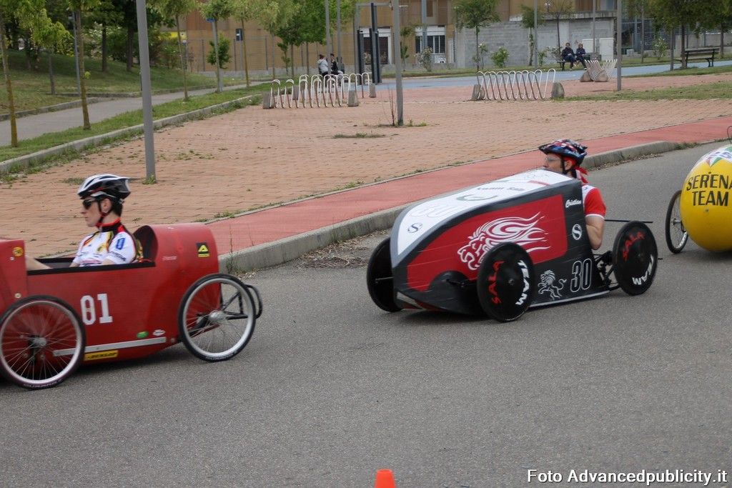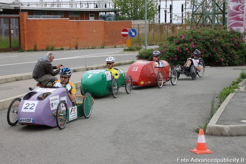 15 equipaggi si sono sfidati sul circuito ricavato nei parcheggi del centro, una gara emozionante e avvincente ma silenziosa e senza emissioni inquinanti. Le auto in gara, infatti, corrono grazie solo all'energia dei piloti che pedalano velocissimi dimostrando al pubblico che ci si puo' divertire e competere nel rispetto dell'ambiente e mettendo in campo volonta', resistenza e allenamento fisico.