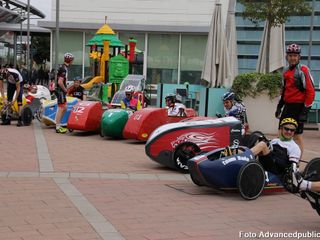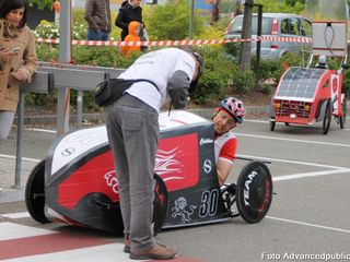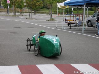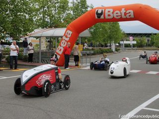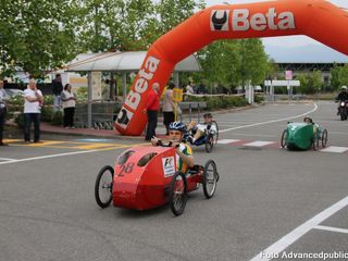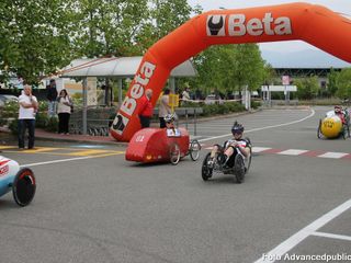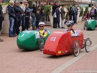 15 equipaggi si sono sfidati sul circuito ricavato nei parcheggi del centro, una gara emozionante e avvincente ma silenziosa e senza emissioni inquinanti. Le auto in gara, infatti, corrono grazie solo all'energia dei piloti che pedalano velocissimi dimostrando al pubblico che ci si puo' divertire e competere nel rispetto dell'ambiente e mettendo in campo volonta', resistenza e allenamento fisico.