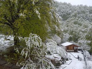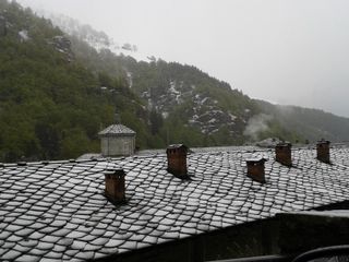 In questa primavera anomala, per il freddo, è tornata a farsi vedere la neve oggi, primo maggio, a Oropa. Lo spettacolo regalato dalla natura, con una leggera spruzzata bianca su tetti e alberi, ha lasciato incantati i pellegrini saliti al Santuario Mariano.
