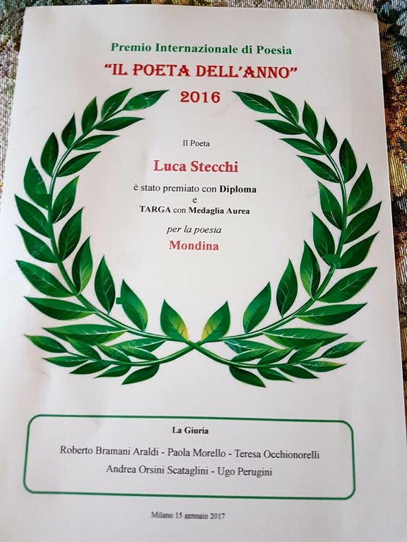 Stecchi è risultato ancora una volta fra i premiati con la poesia "Mondina"; a lui oltre alla Pergamena Personalizzata anche la Grande Targa con Medaglia Aurea, e il privilegio di essere inserito in una antologia edita da Otma 2, contenente tutte le opere premiate durante il Concorso