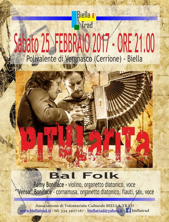 Pitularita, alias Rémy (violino, organetto) e Vincent Boniface (sax, clarinetto, cornamuse, organetto): una coppia di fratelli musicisti, cresciuti al suono della musica delle Alpi e da lì partiti alla scoperta di altri orizzonti musicali ampliando il sentimento conviviale della musica tradizionale verso una dimensione attuale e innovatrice.