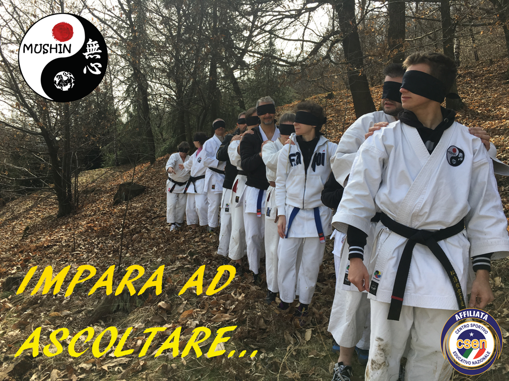 Si è tenuto, dal 6 al 12 marzo, il “Corso al buio”, organizzato dall’ASD Mushin. Da ormai quattro anni, il Dojo Mushin di Valle Mosso organizza questo corso molto particolare; esso consiste in un particolare allenamento, dalla durata di una settimana, svolto esclusivamente con una benda sugli occhi e la scuola priva di luci, per potersi concentrare esclusivamente sul proprio ascolto. Gli studenti indossano la loro benda già fuori da scuola, entrano ed indossano il karategi per poi iniziare l'allenamento. Al suo termine si cambiano ed escono; dopo di che, finalmente tolgono la benda.