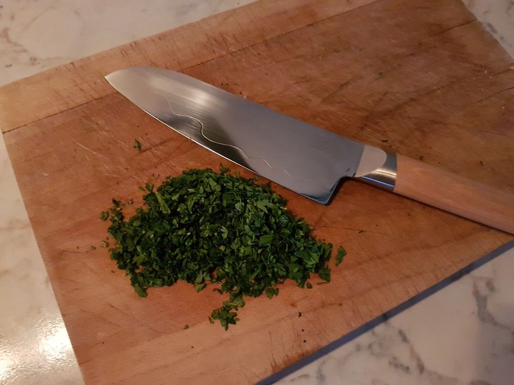 Fate un trito con uno spicchio di aglio e il prezzemolo.