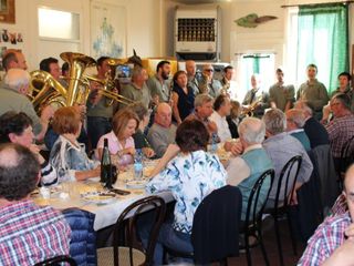 Dopo la Santa Messa presieduta da Don Adriano, il rancio alpino sempre allietato dalla Fanfara Alpina di Roppolo, che oltre ad averci accompagnato per tutta la giornata aveva eseguito il concerto sabato sera presso il polivalente. Una serata veramente toccante per la qualità musicale e per i dialoghi narranti di Chiara Cinguino e Renato Corona. Al termine tutta la sala gremita ha applaudito la Fanfara diretta dal maestro Gabriella Armellini.