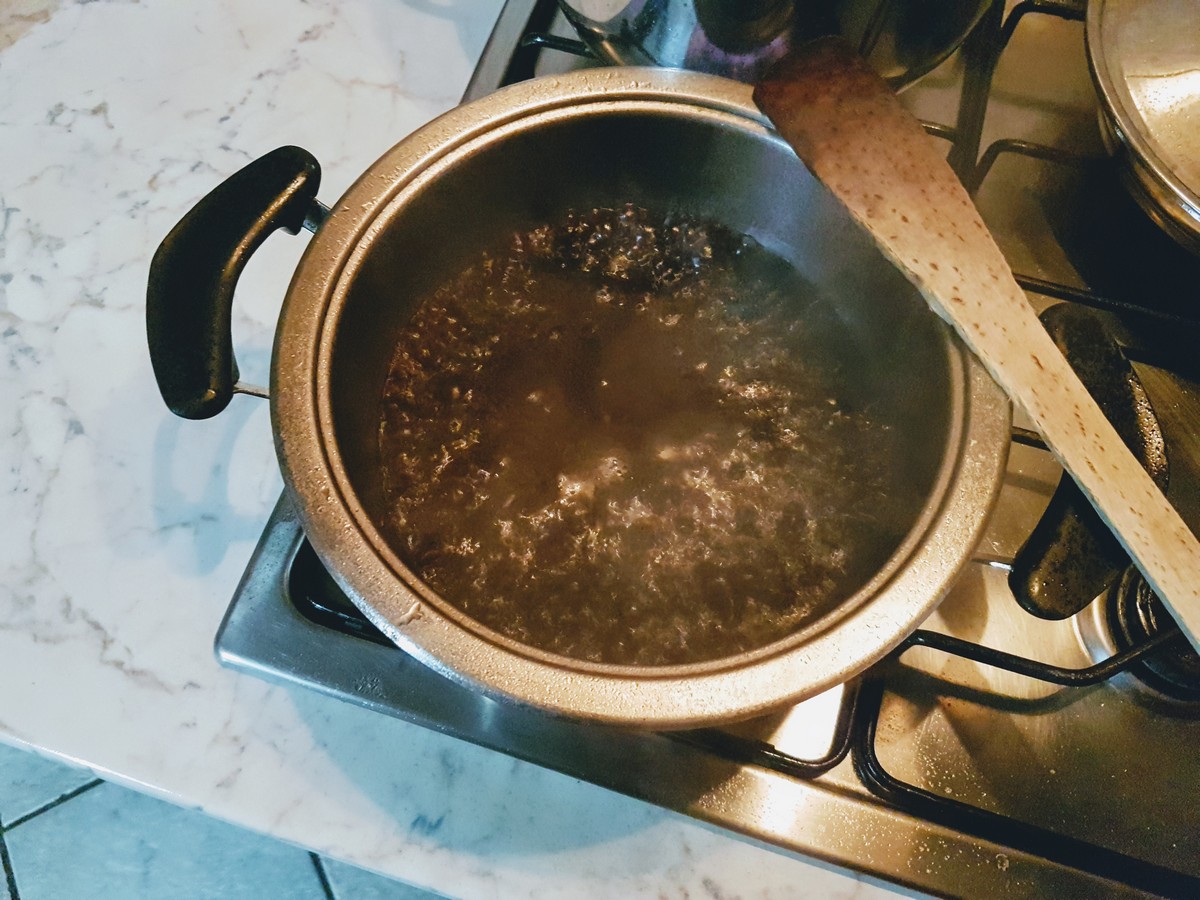 Una volta pronto il riso mantecatelo con il burro, il grana e 1 cucchiaio di aceto di mele.