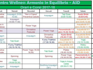 È possibile provare gratuitamente una delle attività Fitness e in acqua: Pilates, Power Yoga, TaijiQuan, Yoga, Ginnastica Posturale e per il Mal di Schiena, Acquagym, Funny Triathlon (un mix di attività in acqua e in Sala efficace e divertente), “Non ci Casco” (Ginnastica Preventiva per le Cadute nell’Anziano), Spinning. E, in esclusiva presso la Palestra Piscina Centro Wellness “Armonia in Equilibrio”, Easy Linea, un mix di caratteristiche essenziali: dimagrimento, defaticamento arti inferiori ed un particolare beneficio nel recupero circolatorio e linfatico.